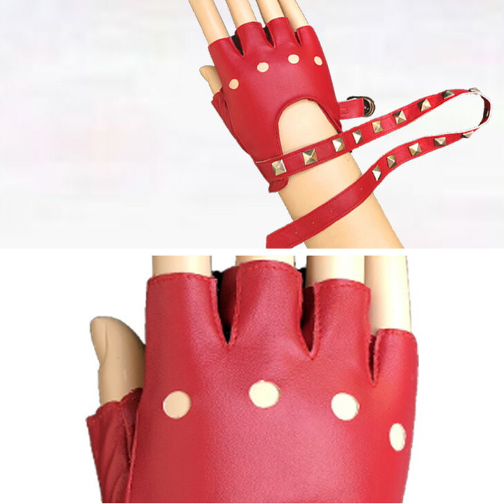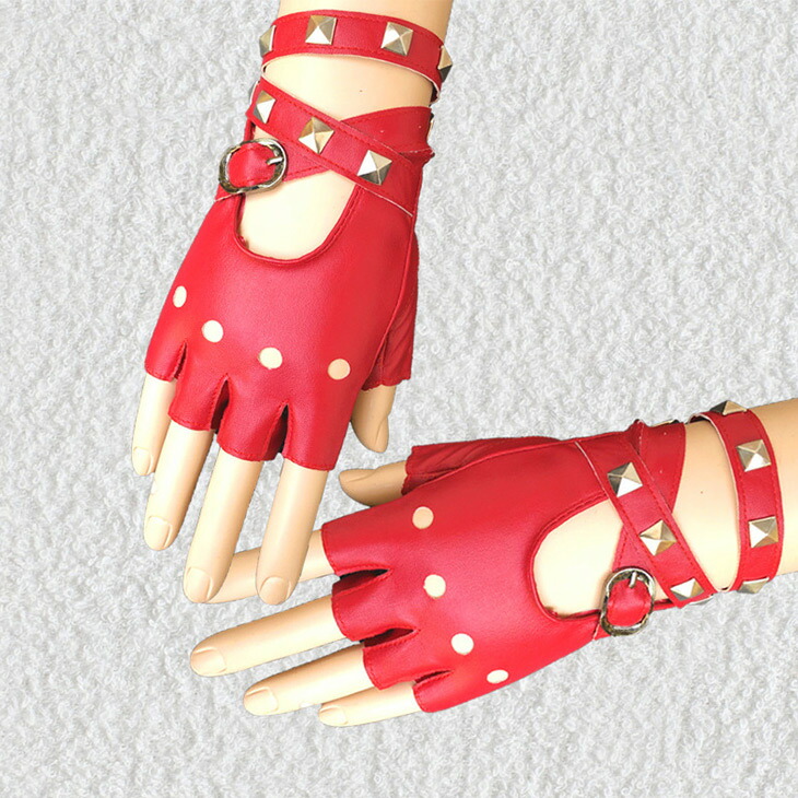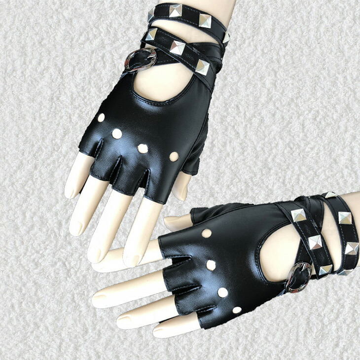 ダンス手袋 半指レザー手袋 スタッズ飾り レディース ハロウィン クリスマス コスプレ 忘年会☆人気アーティストのダンス衣装のアイテムとしても注目のダンス手袋☆
