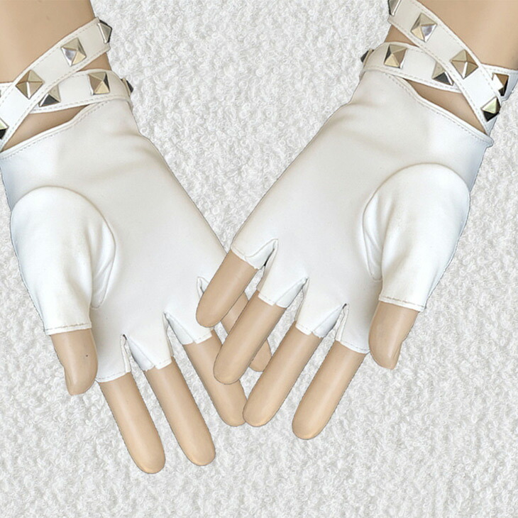 ダンス手袋 半指レザー手袋 スタッズ飾