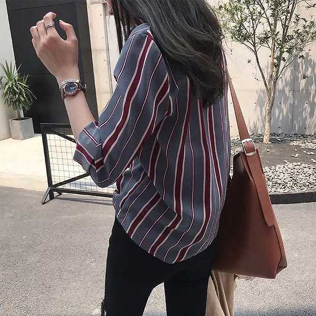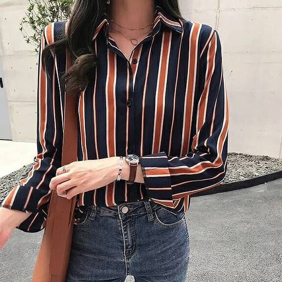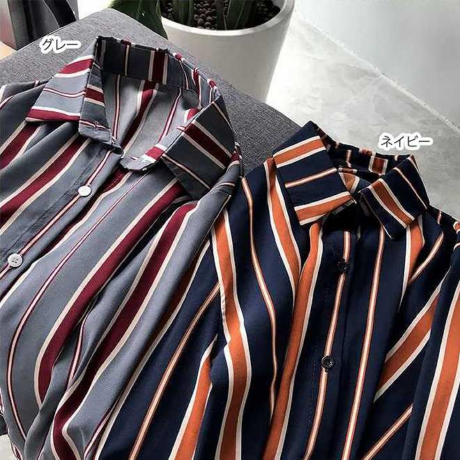 レディースブラウスストライプ柄ロングシ
