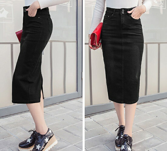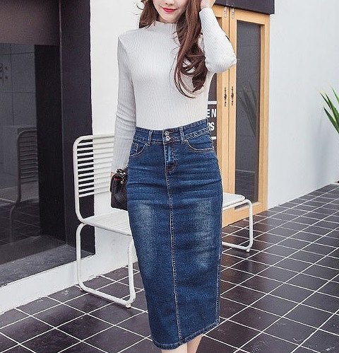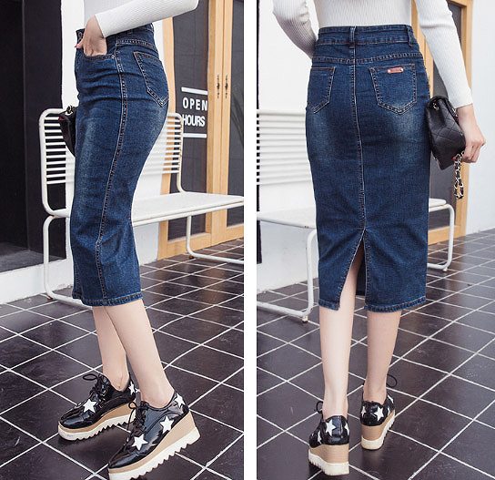 レディースミモレ丈ミディ丈デニムスカー