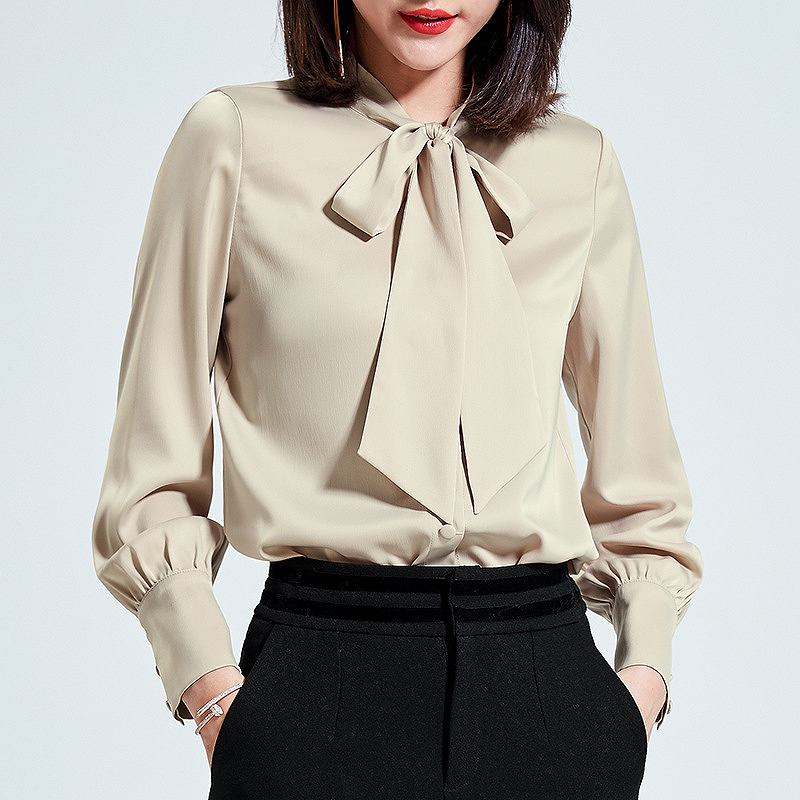シアースリーブ ドッキングシャツ ボウタイシャツブラウス