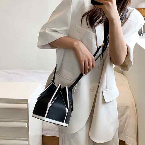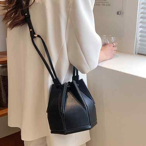 PUレザーバケツバック 六角形鞄2WA