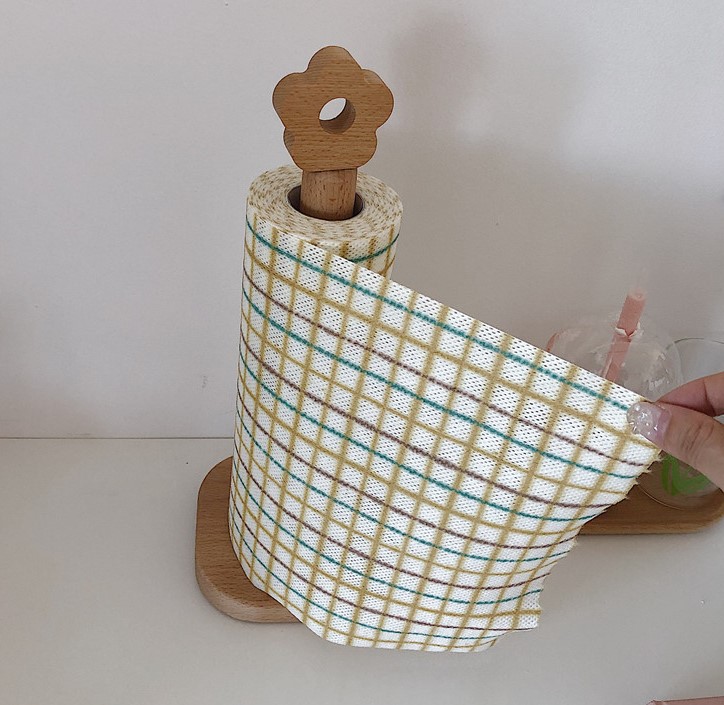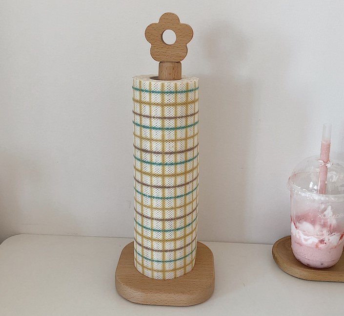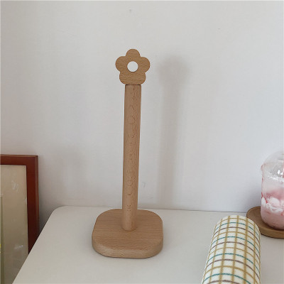 キッチンペーパー ホルダー 韓国 雑貨 インテリア キッチン 収納 おしゃれ 木製 花 シンプル ブラウン スタンド ペーパーホルダー 置き型 キッチン用品 片手 台所 フラワー 花型 可愛い