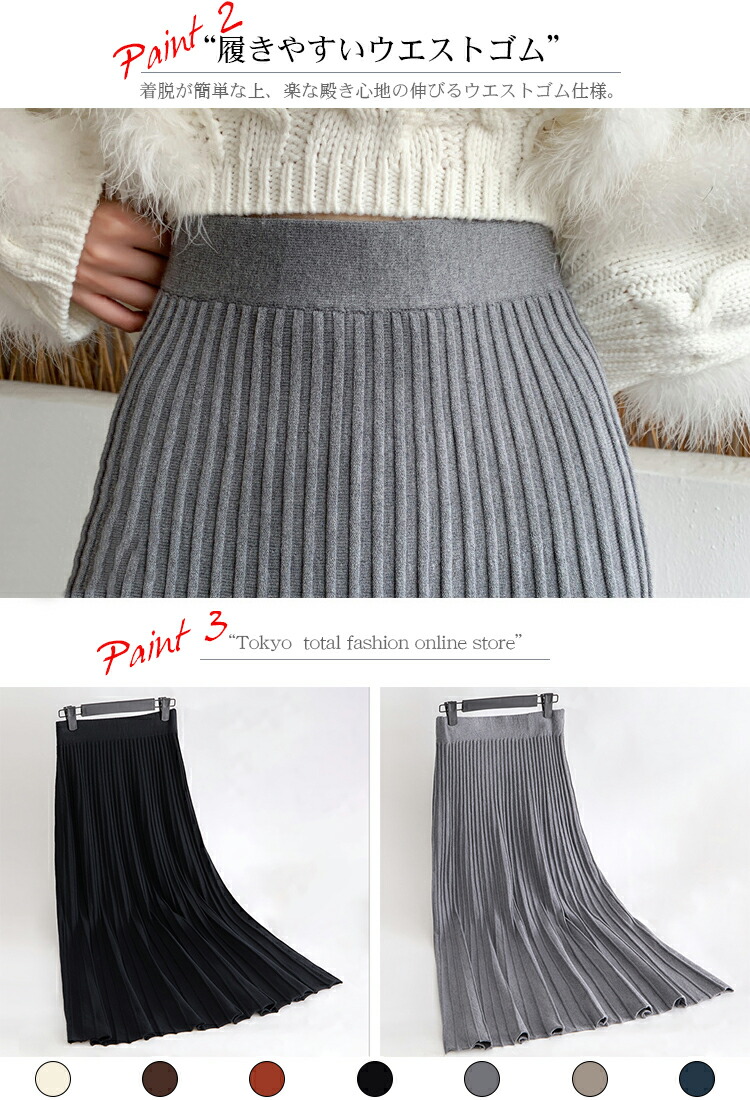 新色追加 ニットスカート プリーツ ロング 春 秋 冬 ボトムス ニット ロング マキシスカート プリーツスカート ロング ウエストゴム Aライン 大人かわいい レディース カジュアル 通勤 入園式 卒業式 送料無料ト