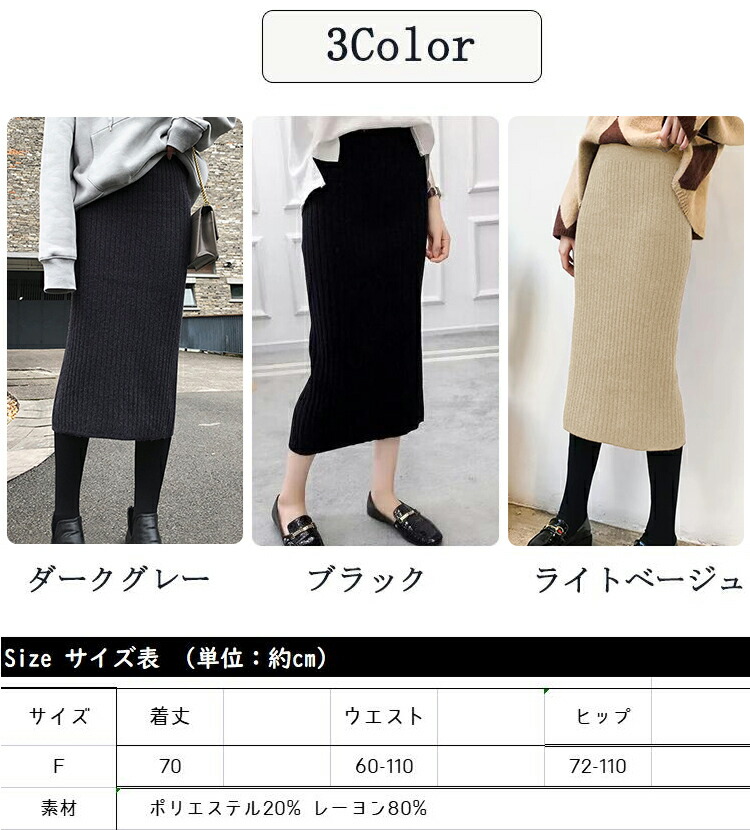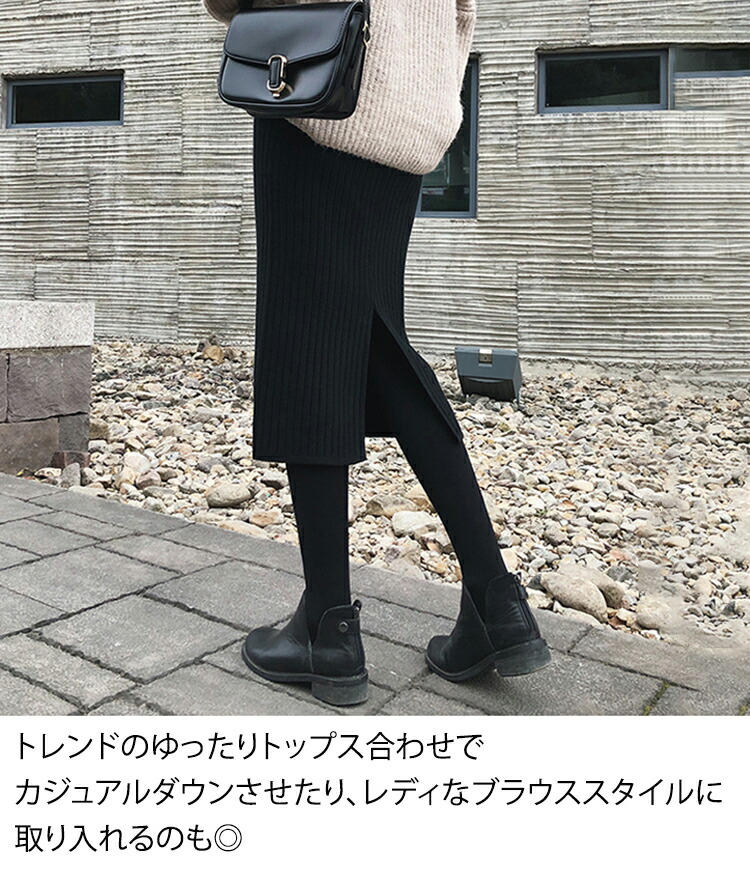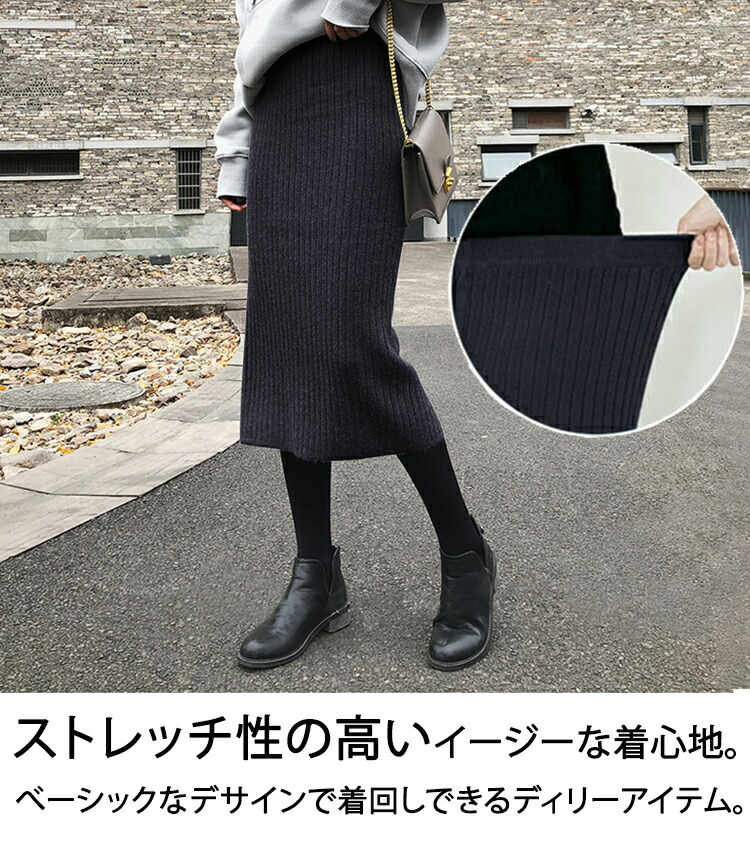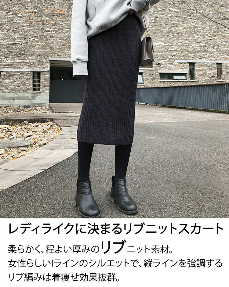 スカート 秋冬 バックスリット リブニット タイトスカート 動けるストレッチ リブニットスカート レディース ニット リブ スリット ロングスカート