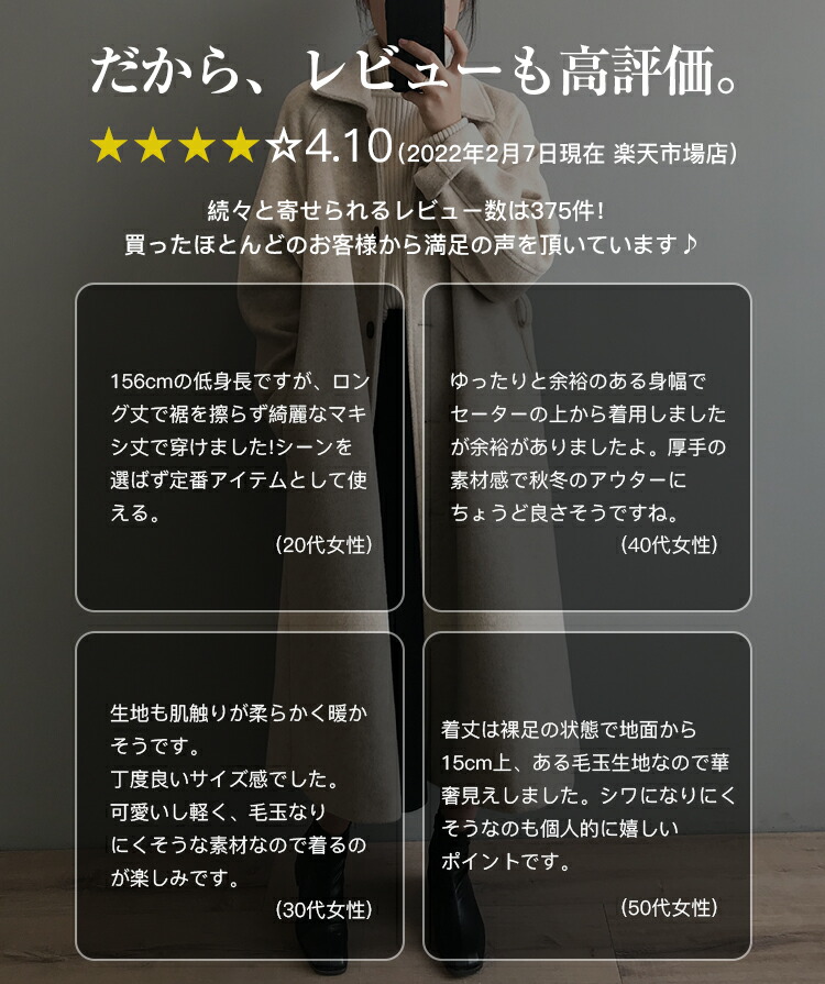しっかり、かつ柔らかく肌触りのよい生地を使ったテーラードロングコート。