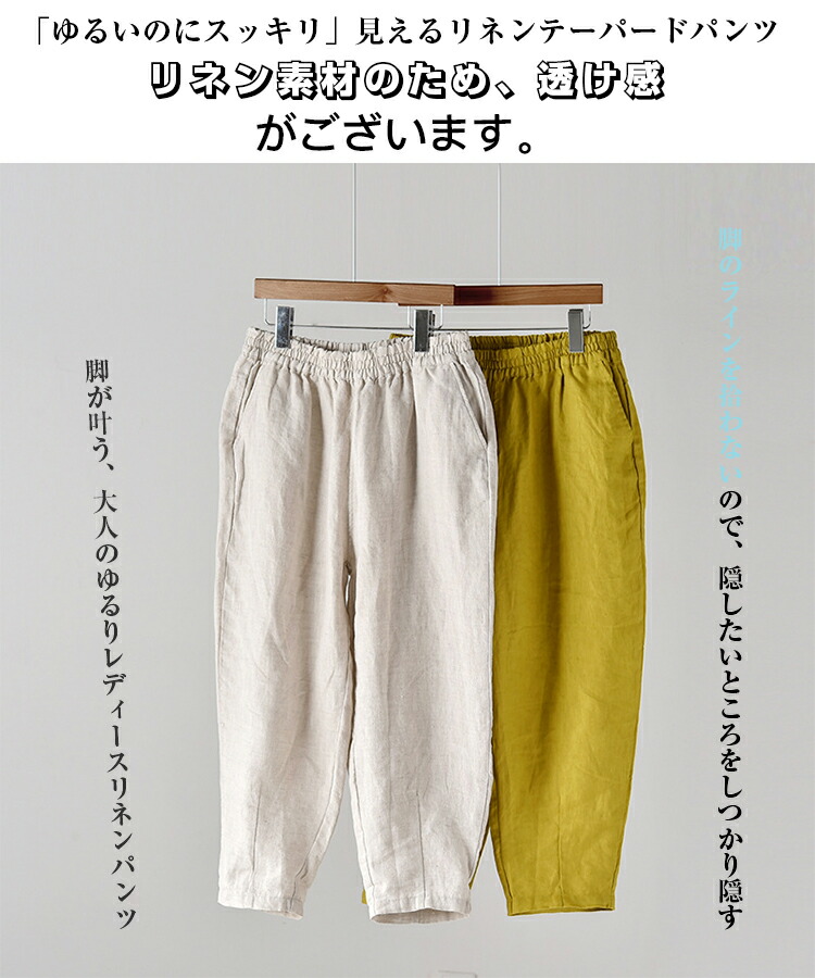 ゆるいのにスッキリ見えるリネンテーパードパンツ リネン レディース パンツ 麻混 無地レディースファッション ボトムス パンツ