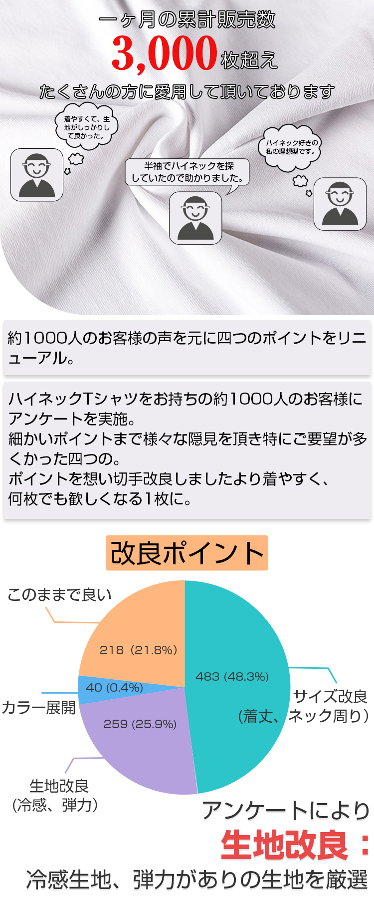 ハイネックデザインは定番のTシャツでも一足違った雰囲気にしてくれるのでおススメです。