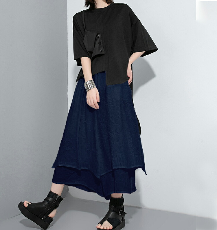 アシンメトリー ゆるひら スラブパンツ ワイドパンツ レディース 春 夏 春コーデ 9分丈 袴パンツ 変形 ダンスパンツ ドレープ モード系 イージーパンツ ボトムス スカンツ ガウチョ きれいめ ゆったり 送料無料