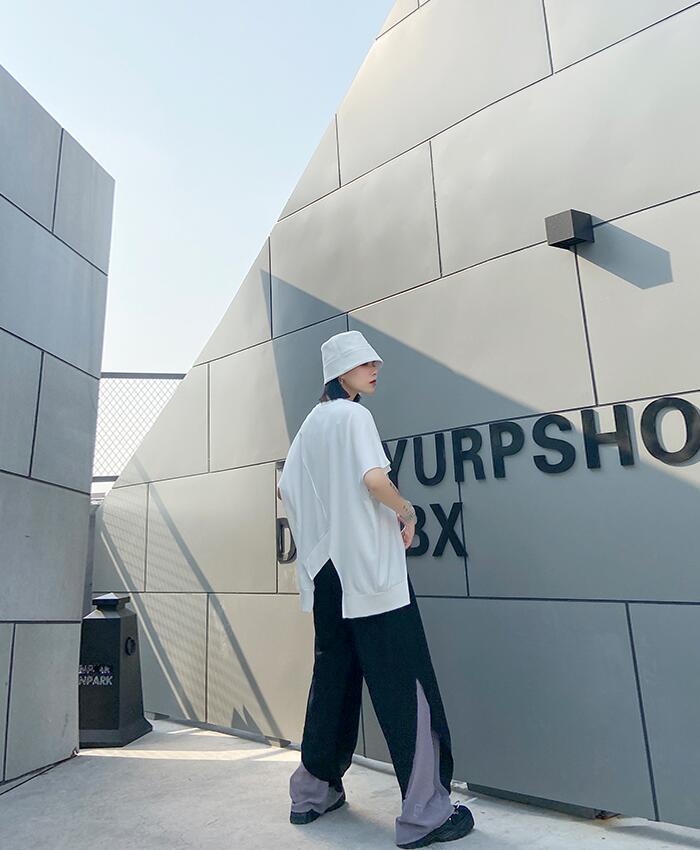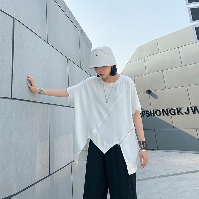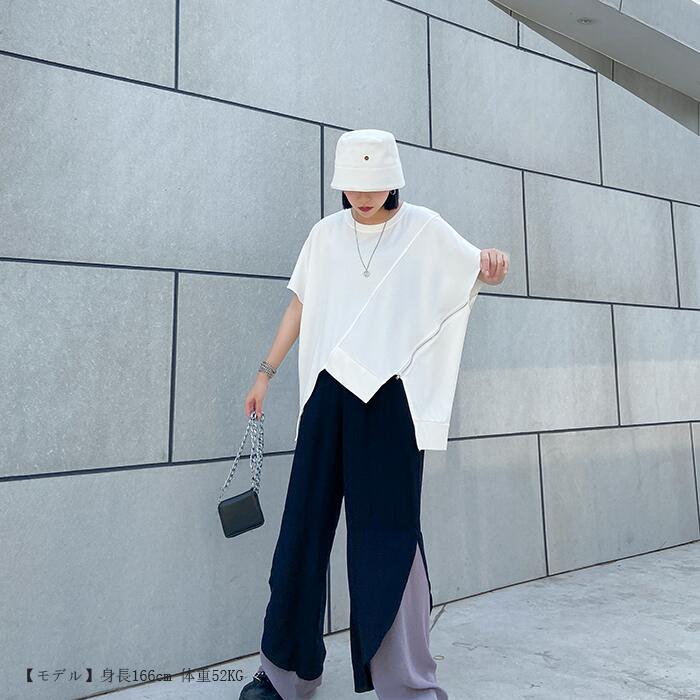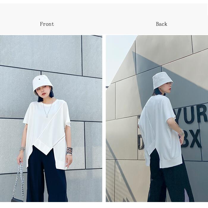 柔らかいTシャツ 裾変形デザインが今年らしいスタイリングを演出 サイドチュニックTレディースファッション トップス Tシャツ カットソー