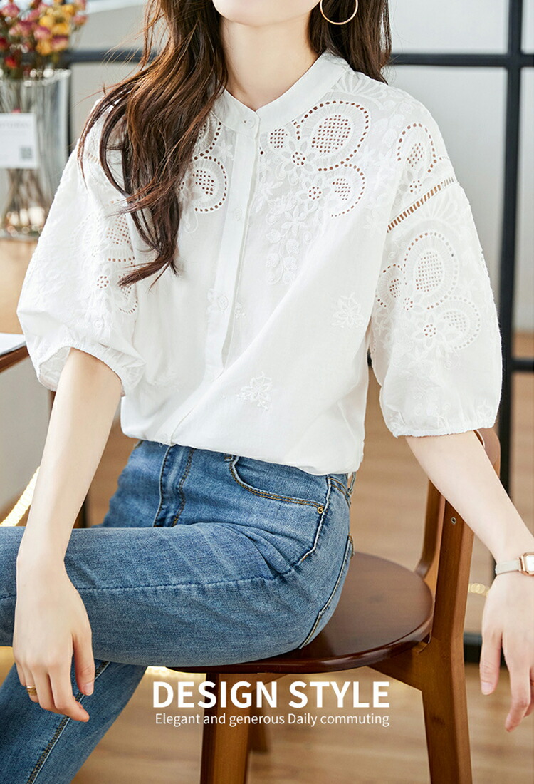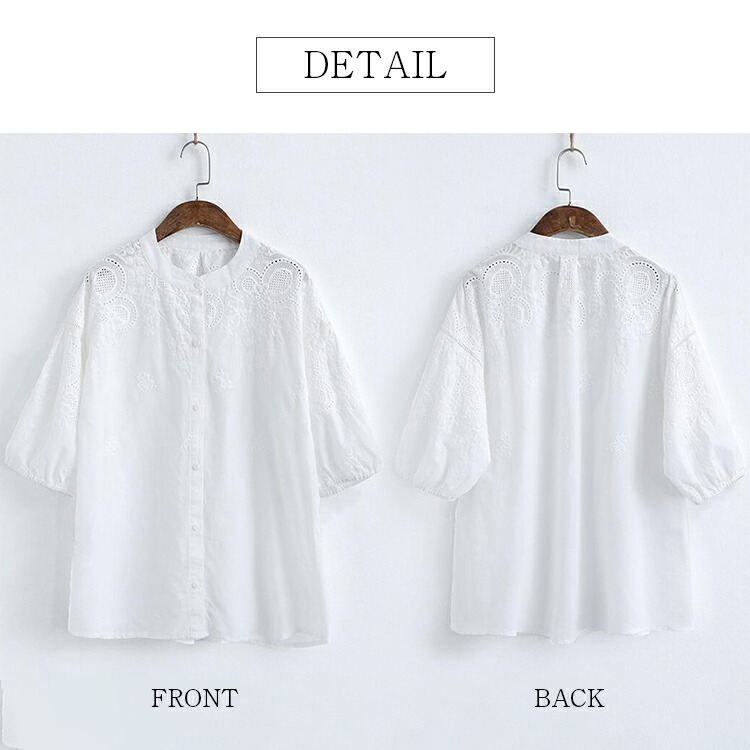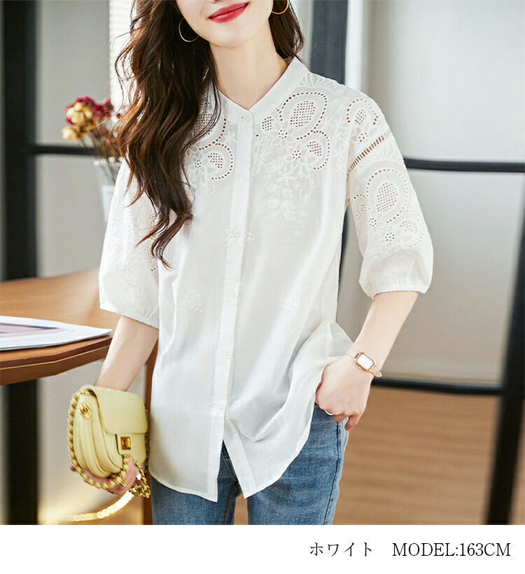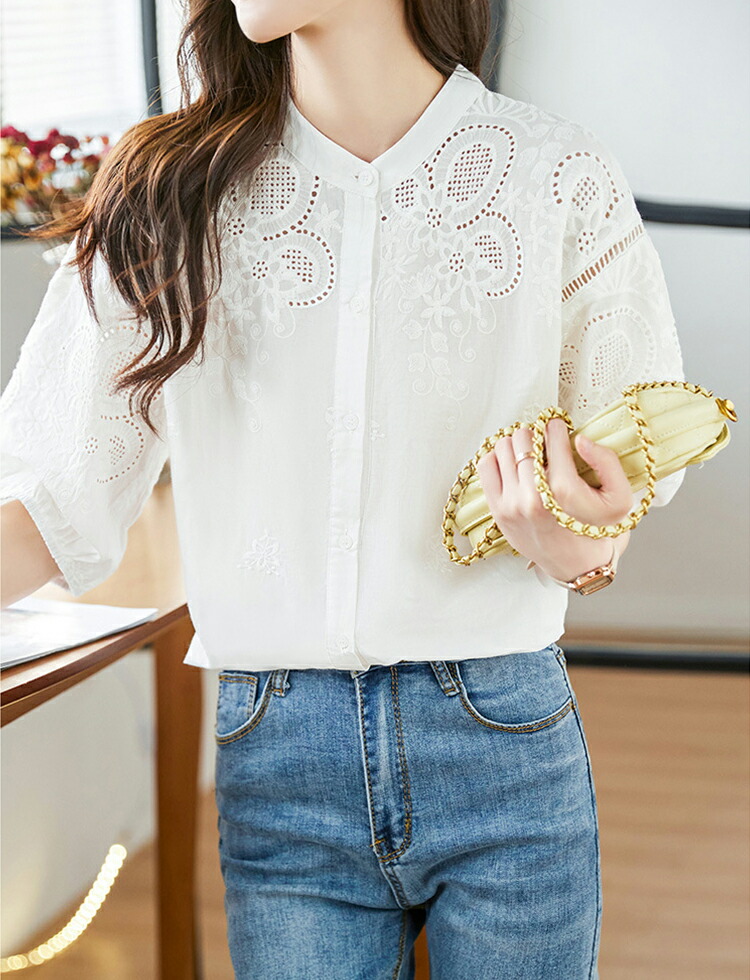 刺繍スタンドカラーブラウス ブラウス