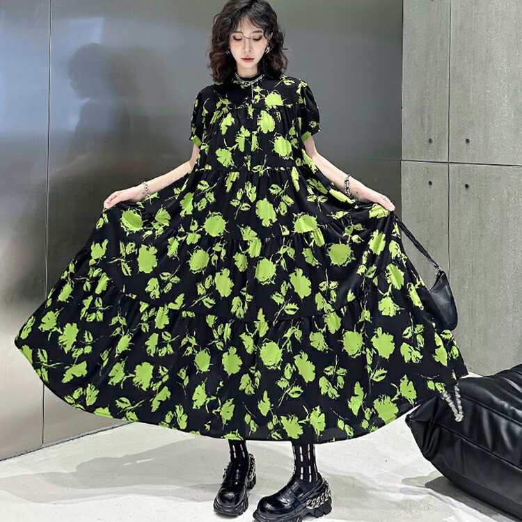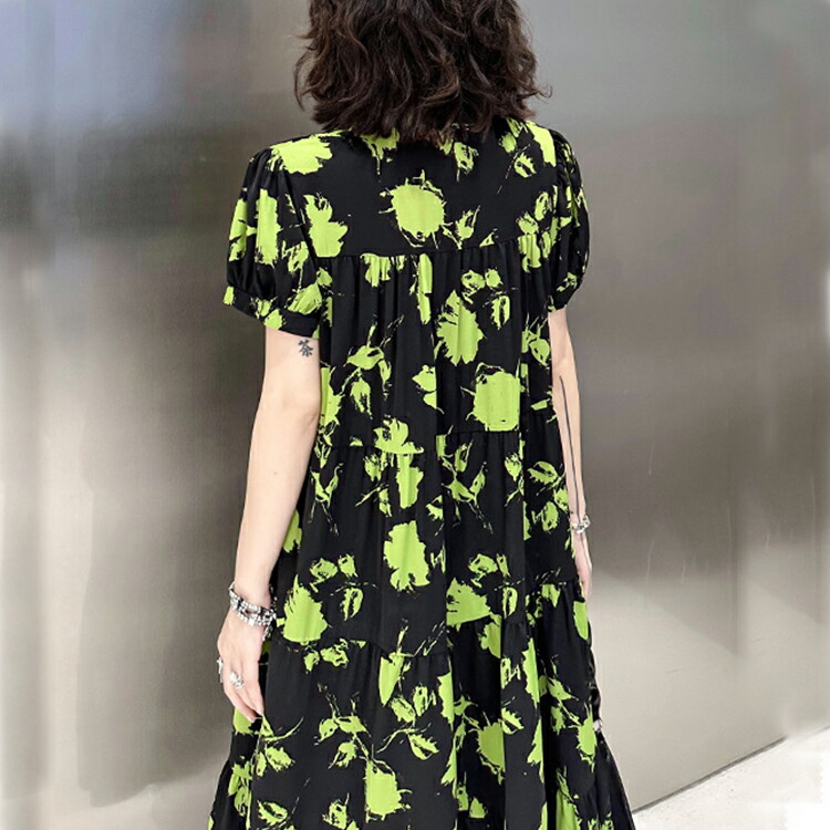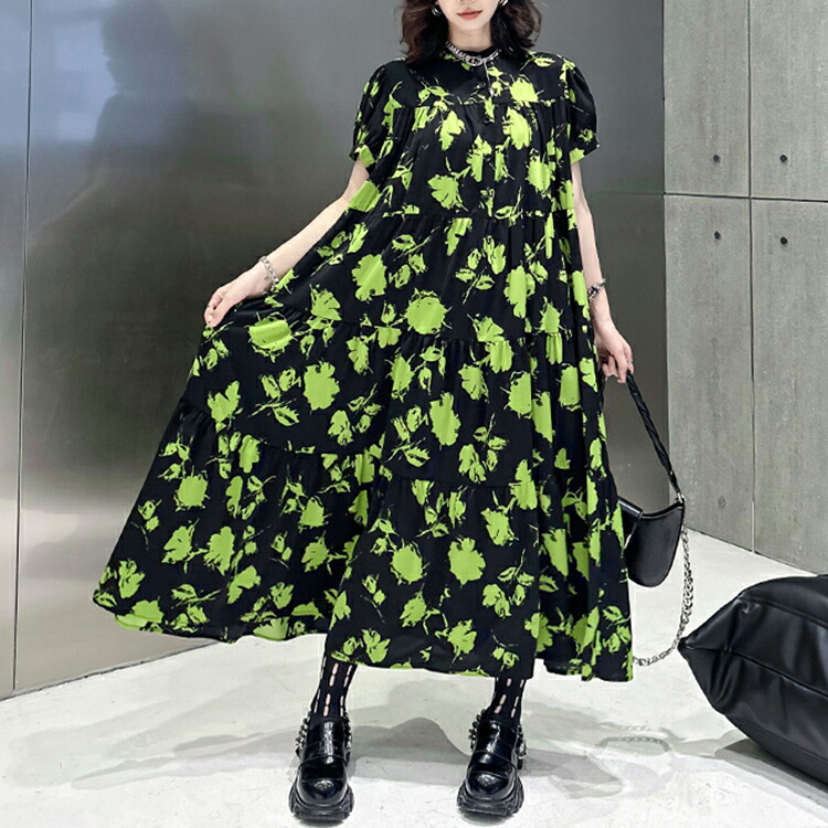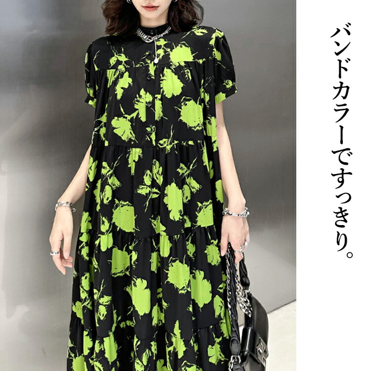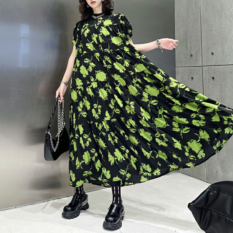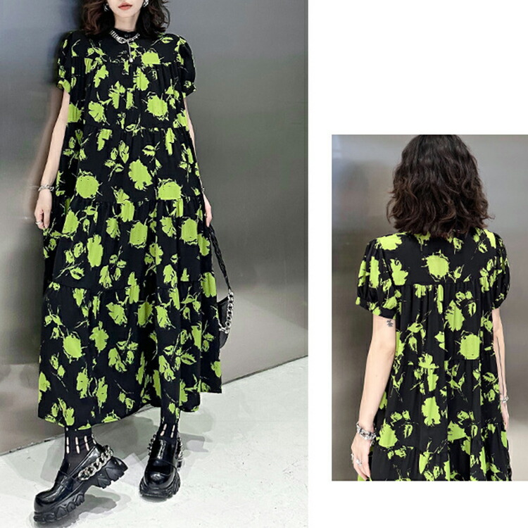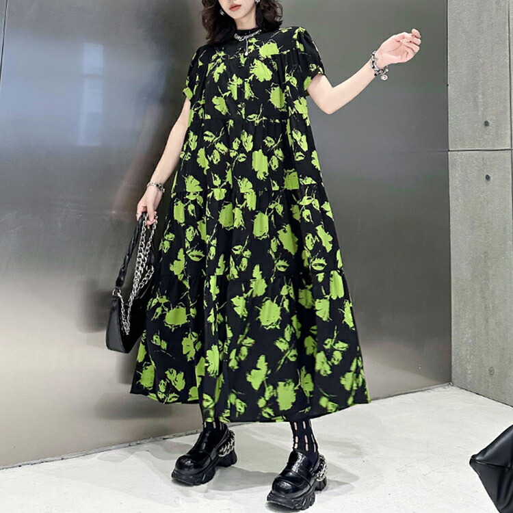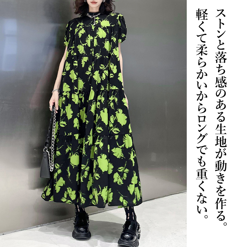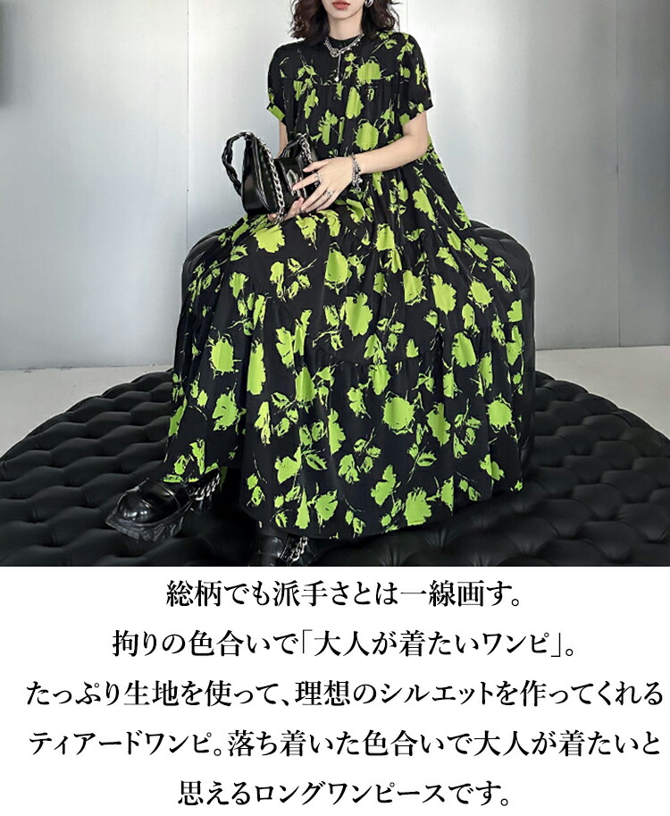 ロング ゆったり 柄ワンピ 柄 ティア