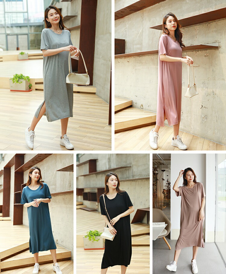 スーパーSALE♪57%OFF tシャツワンピース レディース 夏 半袖 クルーネック ロングワンピース ルームウェア ワンピース ゆったり 大きいサイズ 薄手 柔らか 通気性 吸湿 速乾 部屋着 大