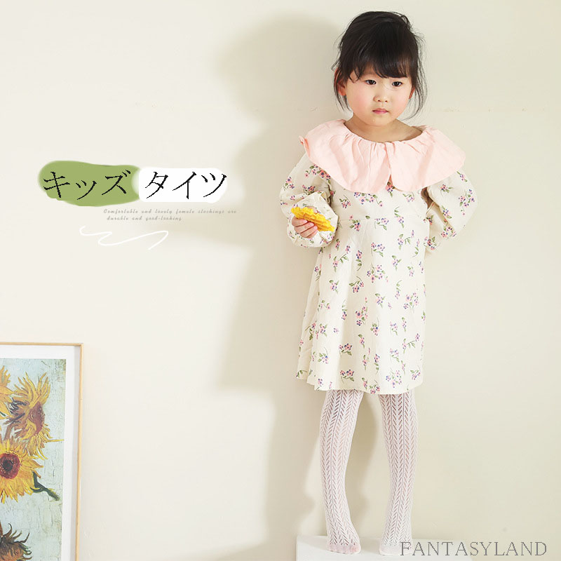 キッズ レーシーフラワーラッセルタイツ 子供用 キッズ 白 ホワイト S M L 95~150cm靴下 タイツ キッズ 子供 子供用靴下 発表会 入園式 結婚式 幼稚園 網タイツ ネットタイツ アイボ