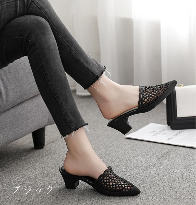 メッシュ編み ミュールサンダル 5.5センチヒール レディース ビーチ サンダルミュール 春夏 靴 サンダル トングサンダル ローヒール 大きいサイズ ぺたんこ 歩きやすい 痛くない 23 スリッパシ