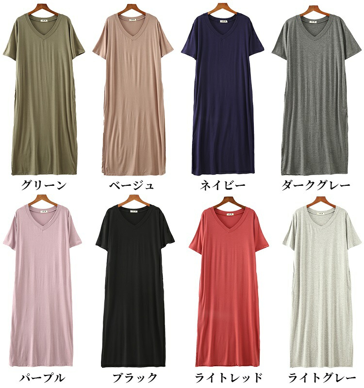 とらみ■商品名tシャツ ワンピース レディース 夏 半袖 Vネック tシャツワンピース ルームウェア ワンピース ロングワンピース スリット 柔らか 綺麗 通気性 吸湿速乾 部屋着 シンプル 送料無料■サイズ着丈 胸囲 肩幅 袖丈L 110cm 100cm 46cm 22cmXL 113cm 100cm 52cm 24cm多少の誤差が生じる場合がございます。予めご了承下さいませ■素材モーダル 100%タンブラー乾燥はお避け下さい。■カラー■ネイビー ブラック ライトグレー ダークグレー ベージュ グレー ライトレッド パープル画面上と実物では多少色具合が異なって見える場合もございます。ご了承ください。■商品説明『着るだけでお洒落可愛い私に。』