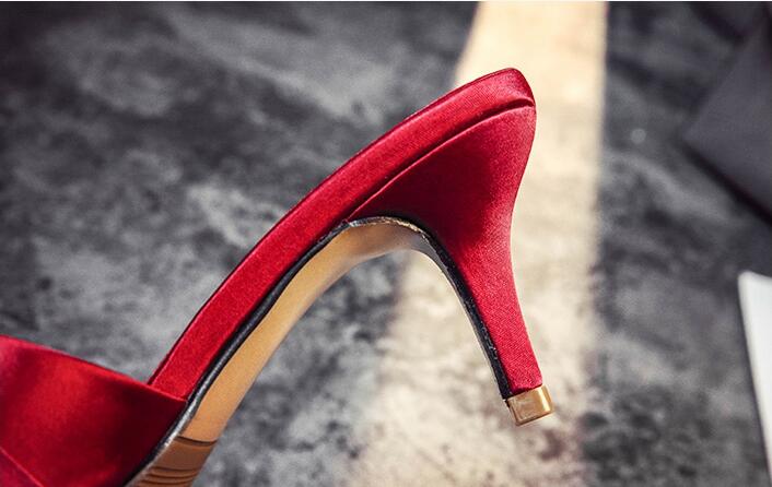 長脚効果サテンミドルヒールサンダルレデ