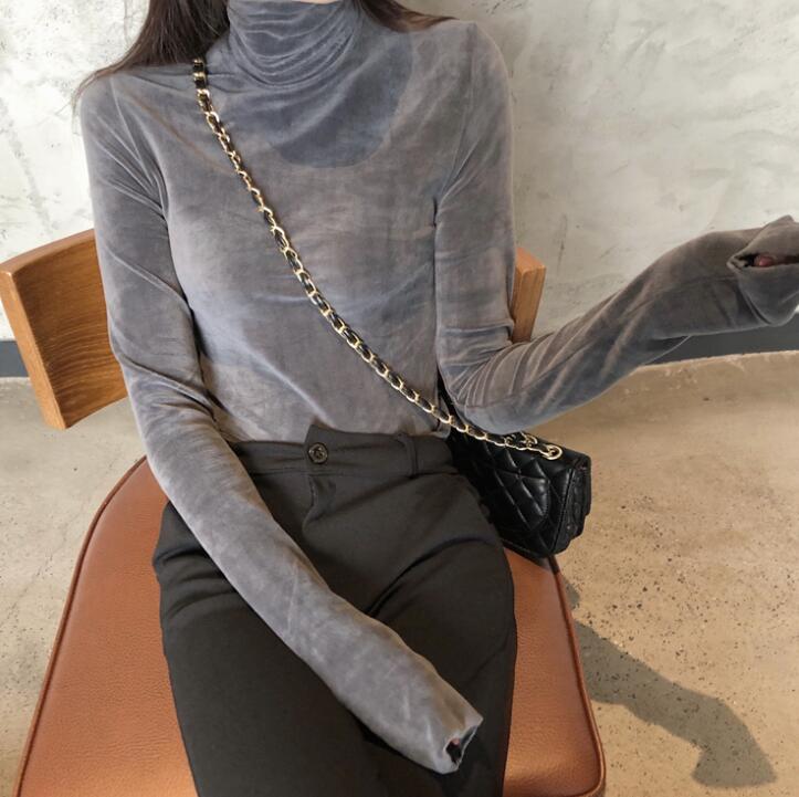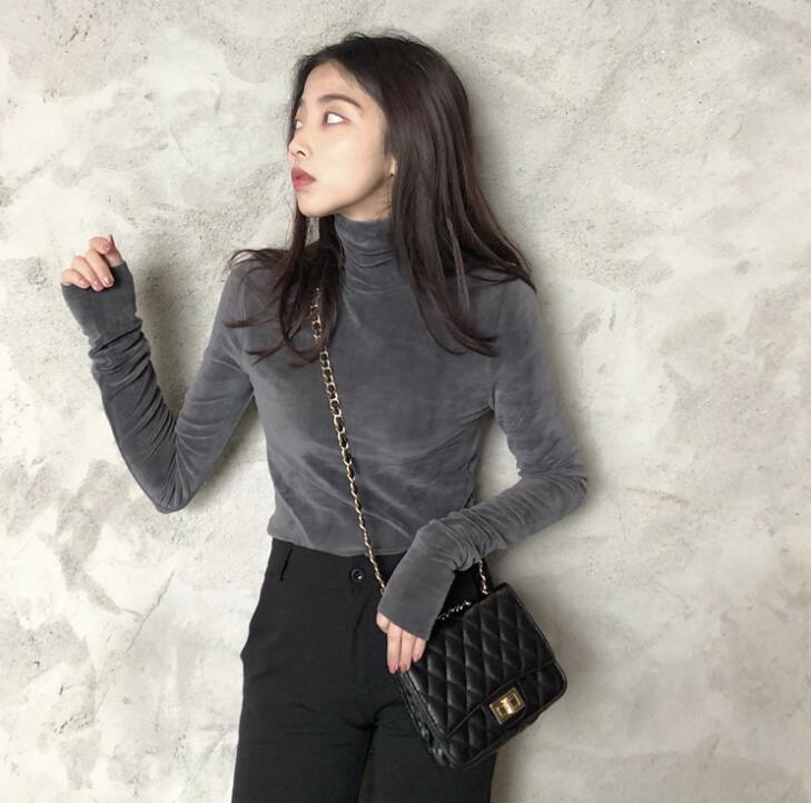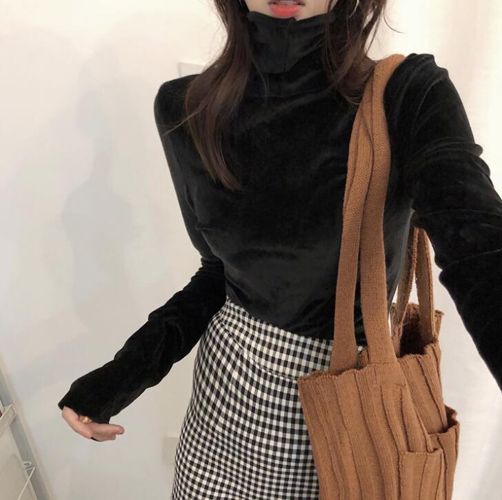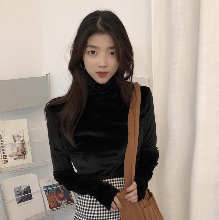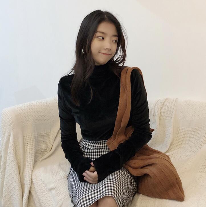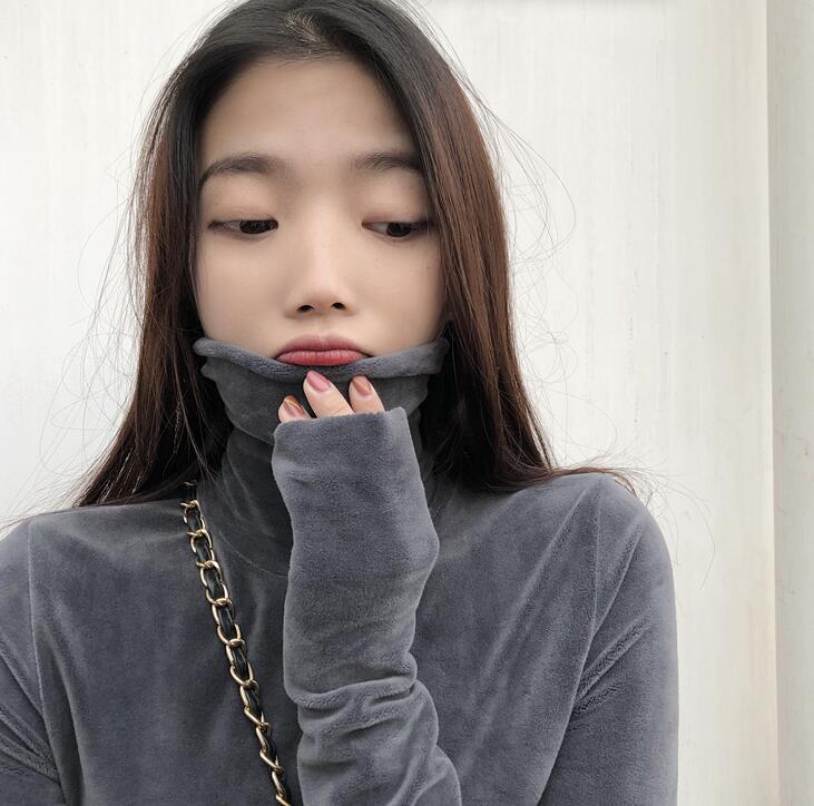 ベロア 長袖 tシャツハイネック カッ