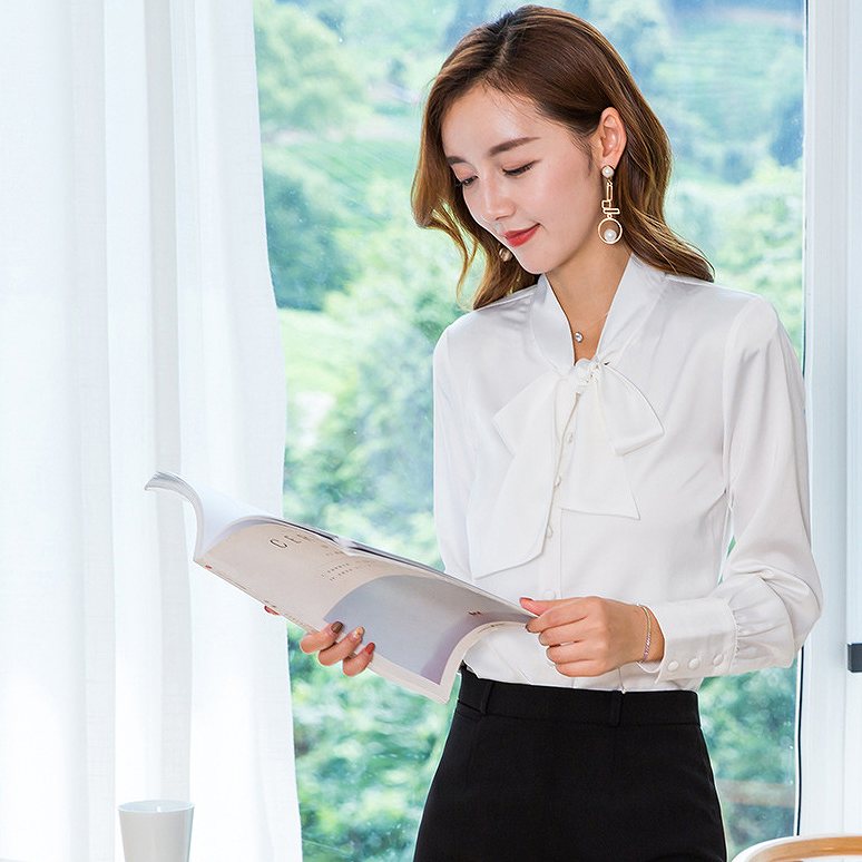 シアースリーブ ドッキングシャツ ボウタイシャツブラウス