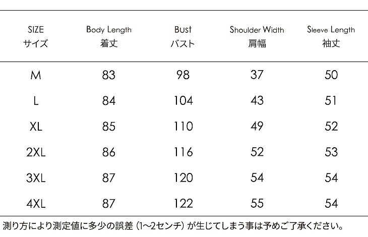 サイズ: M L XL 2XL 3XL 4XL