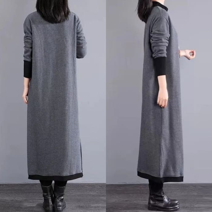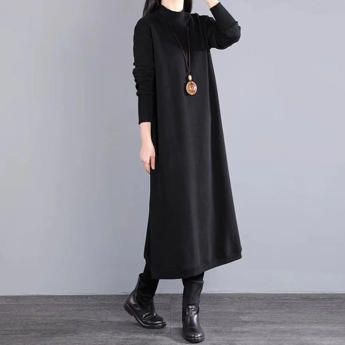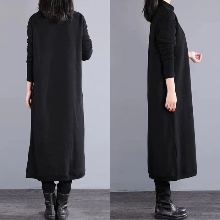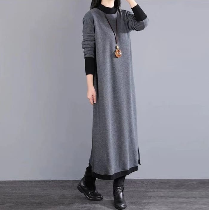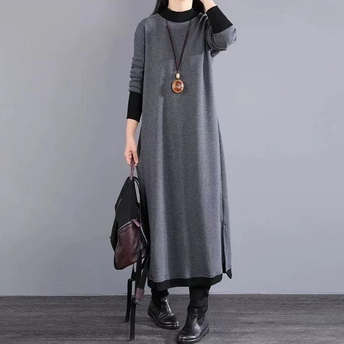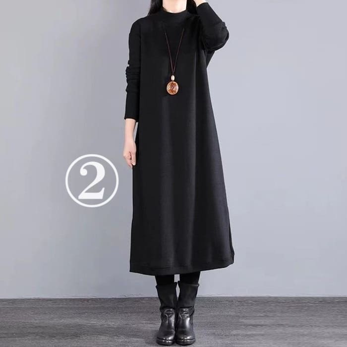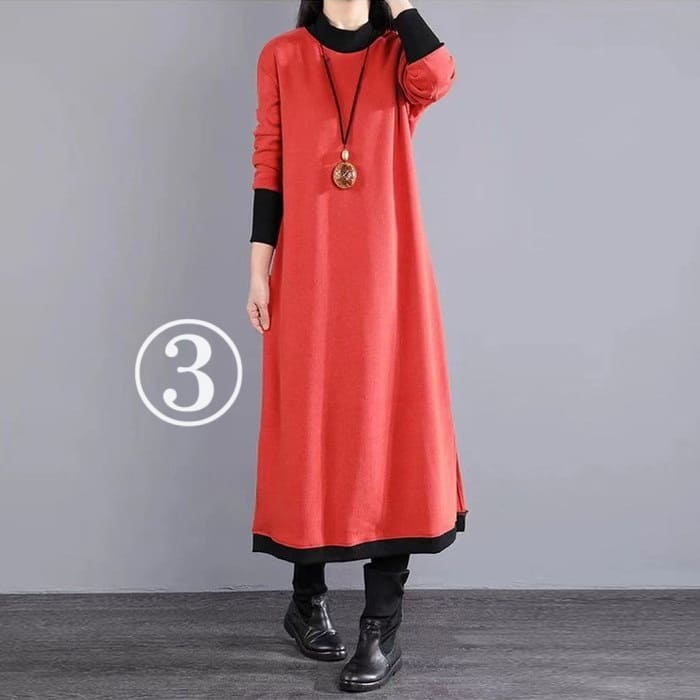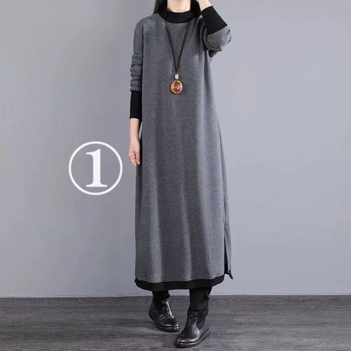 ハイネック 重ね着風 ワンピース レデ