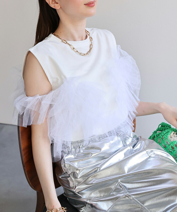 シアースリーブ ドッキングシャツ ボウタイシャツブラウス