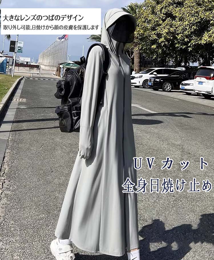 長袖 カーディガン UVカット ロングカーディガン 薄手 フード付き 涼しい素材 春夏 全身カバー レディース 海辺の仕事 潮風対策 おしゃれ 紫外線 通気性 速乾性 日焼け対策 アウトドア