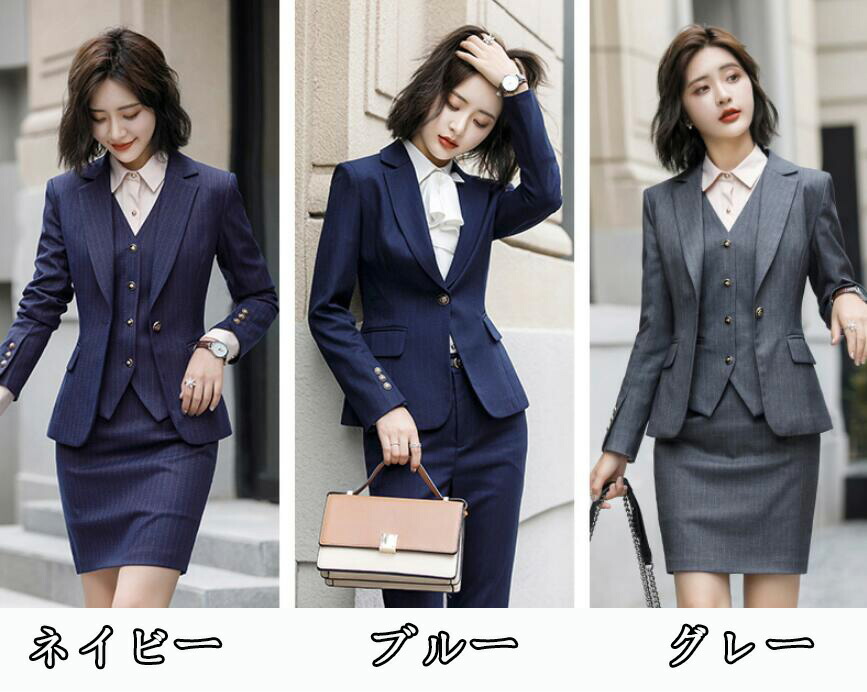 vertical-key: ネイビー3点セットスカート ネイビー3点セットパンツ ブルー3点セットスカート ブルー3点セットパンツ グレー3点セットスカート グレー3点セットパンツ