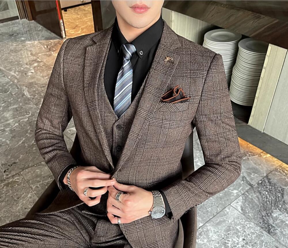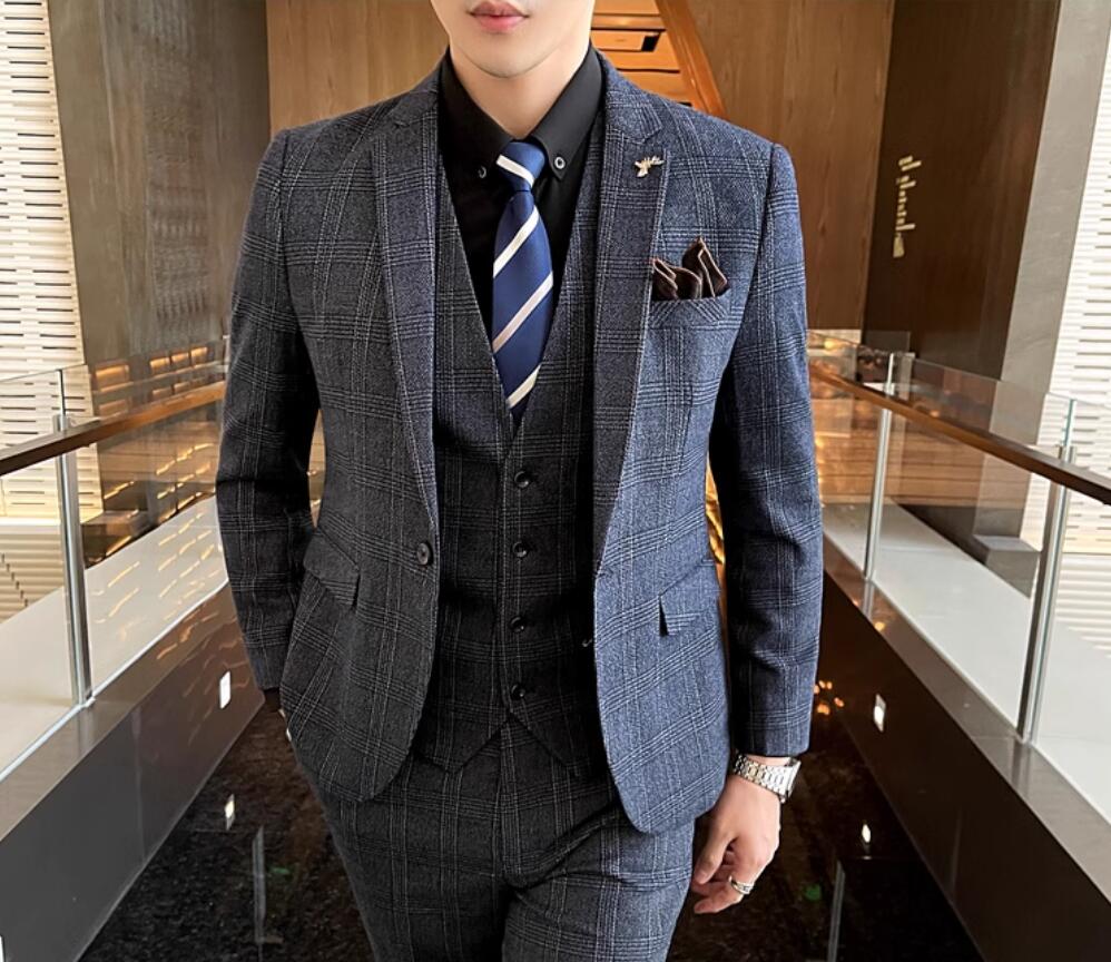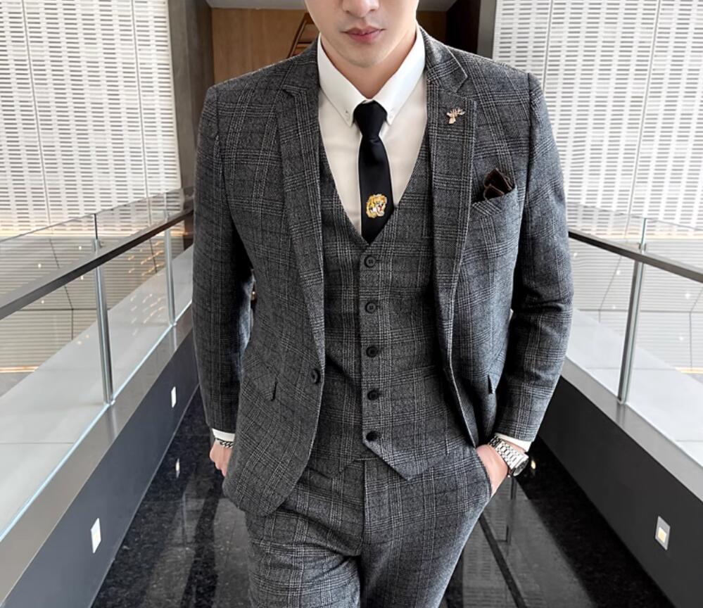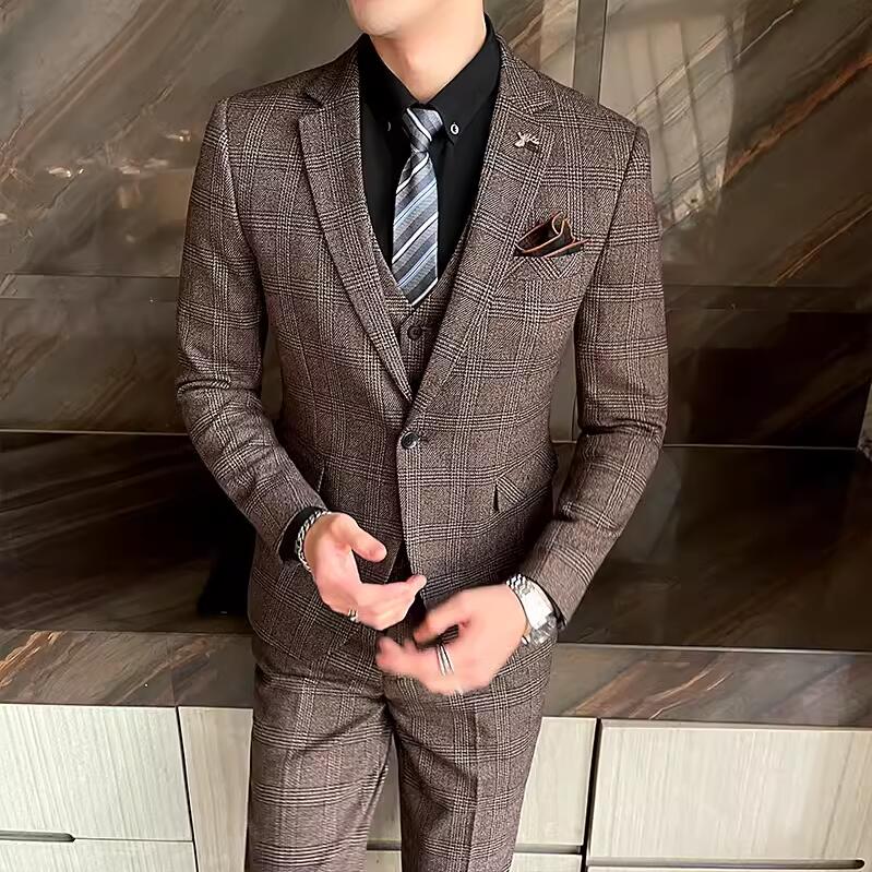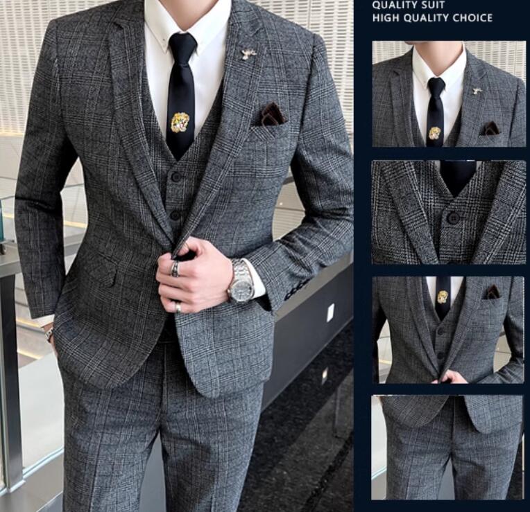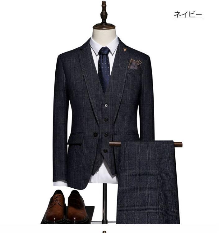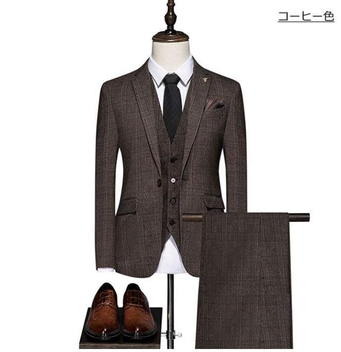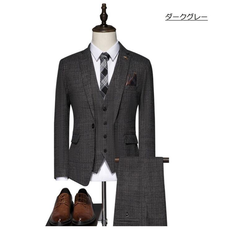 大量注文可 紳士服 suit 成人式 メンズスーツ チェック柄 M~5XL 3点スーツ ビジネス 通勤 メンズスーツ 宴会 スリムスーツ 花婿の介添え タキシード フォーマル 上着+パンツ+ベスト