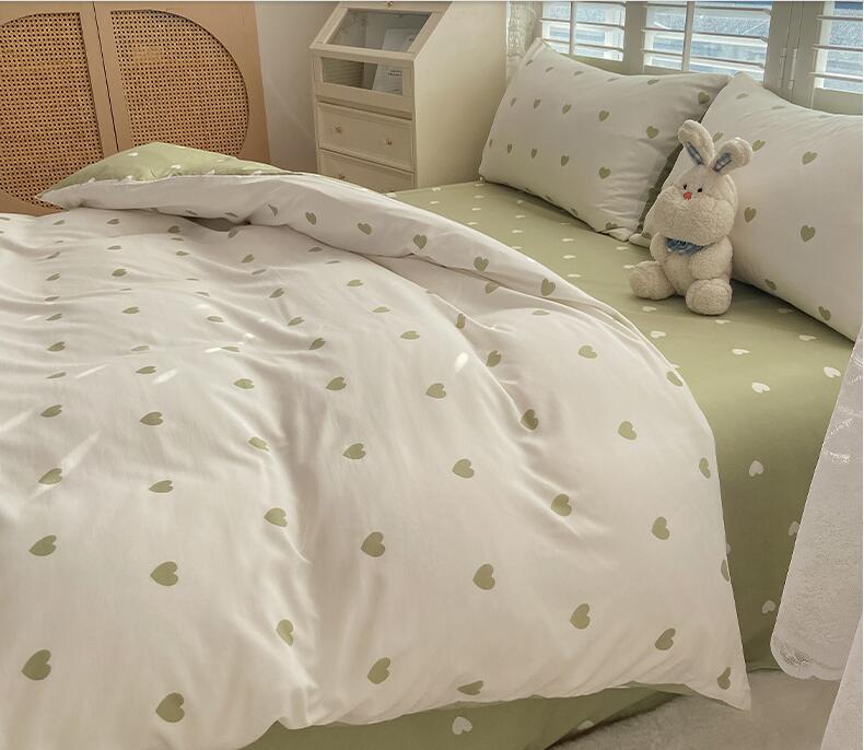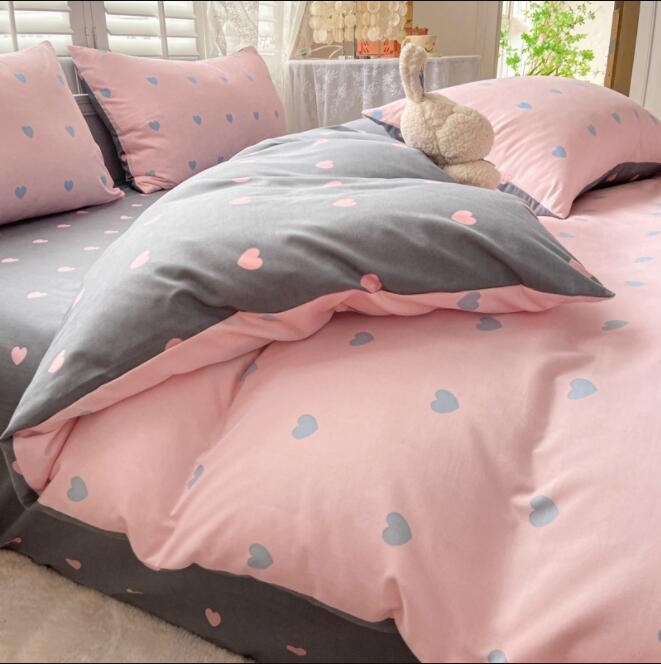 ハート柄 大人気 4色 新生活 韓国風 3点セット 寝具カバーセット 掛け布団 ベッド用品 1.2m フラットシーツ ボックスシーツ シングル セミダブル ダブル 4点セット1.5m 1.8m