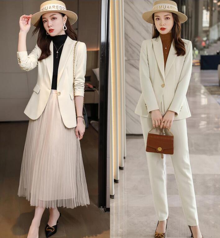 品質良い 4color 2点セット レディース 上着 レディーススーツ S~5XL 1つボタン スリムスーツ 細身スーツ 大きいサイズ リクルートスーツ パイピング加工 スキニーパンツ 上下セット