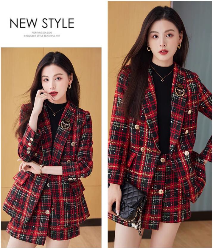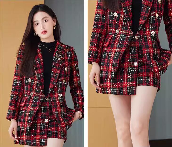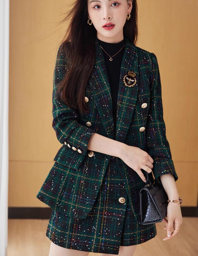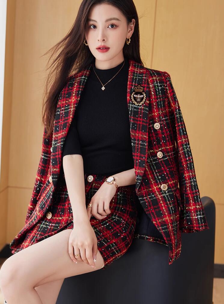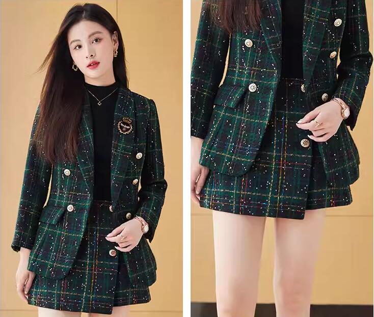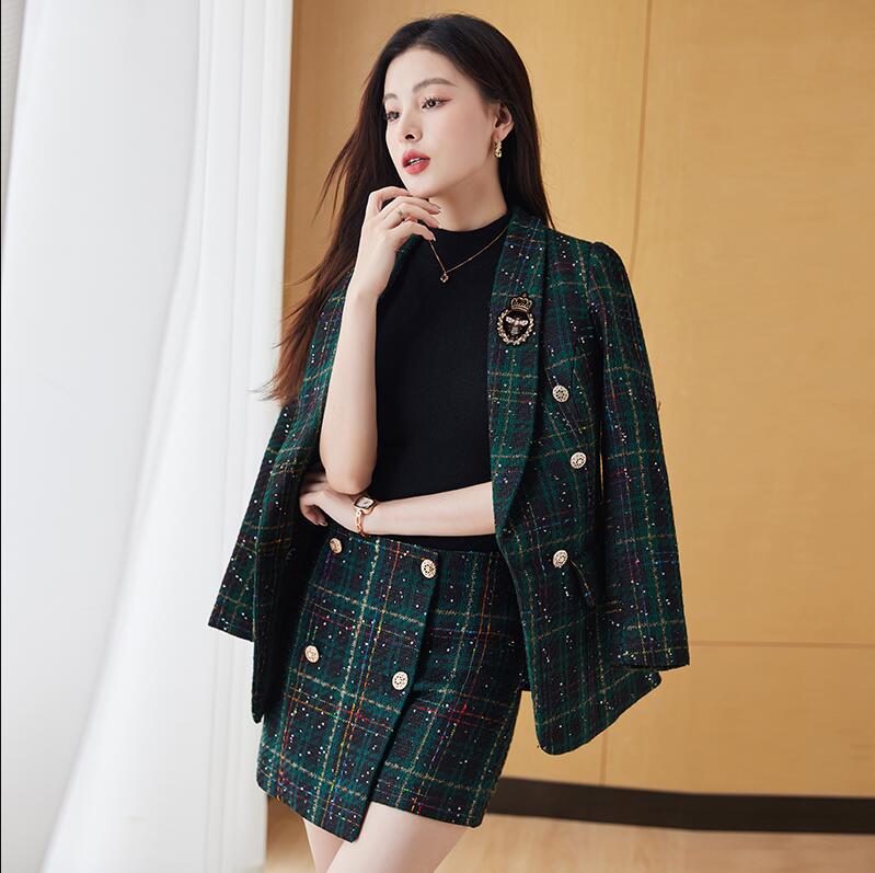2色 2点セット 縞々柄 チェック柄 千鳥柄 ジャケット+ボトムスはスカート オシャレスーツ レディーススーツ 通勤S~3XL ビジネススーツ グリーン レッド