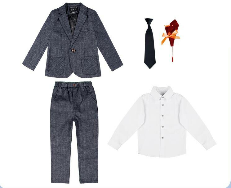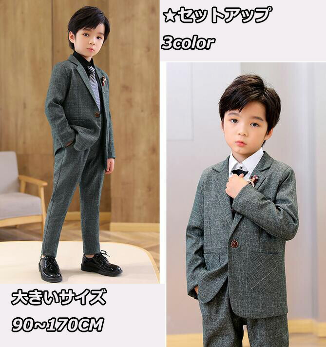3色 5点セットアップ 無地 イギリス風 子供スーツ タキシードスーツ ジャケット+シャツ+ズボン+ネクタイ+ブローチ 90~170cm 入学式 メンズ ピアノ 司会 演奏会 防シワ加工 上下セット