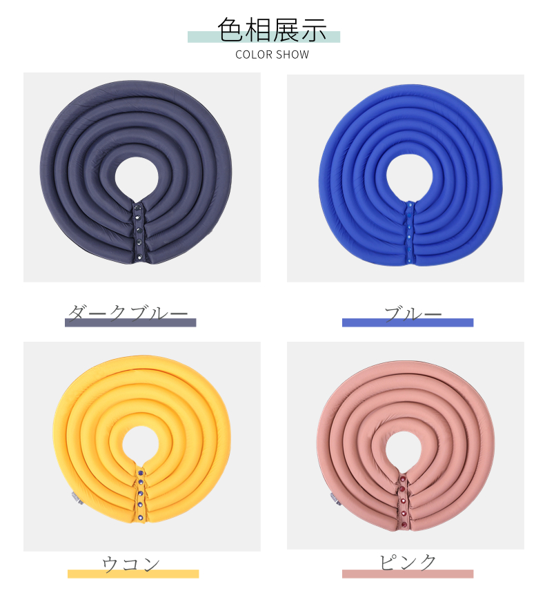 XS (首周り)約13.5-21cm(幅)約12cm(直径)約29cm (厚み)約2.5cm 重さ(約)30g