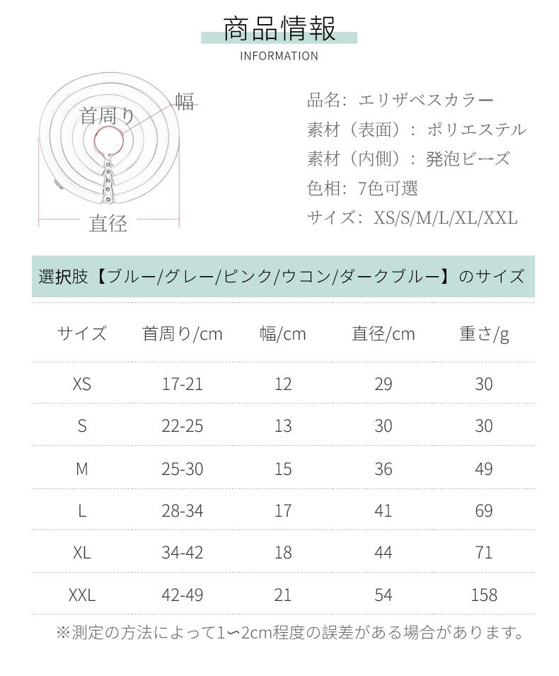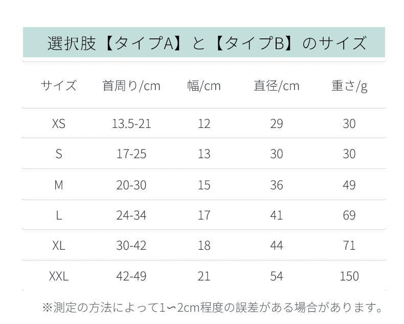 XS (首周り)約17-21cm(幅)約12cm(直径)約29cm (厚み)約2.5cm 重さ(約)30g