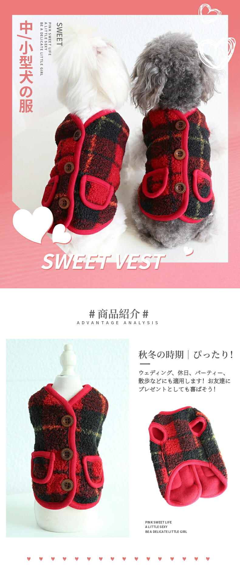 最新入荷!小/中型犬の可愛いチョッキ!ふわふわ軽くて着心地がよい!