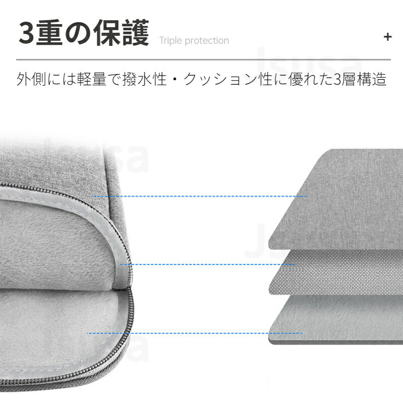 撥水加工されたため、撥水性があり、雨の日にも安心!ノートPCに優しいソフトなインナーバッグ。