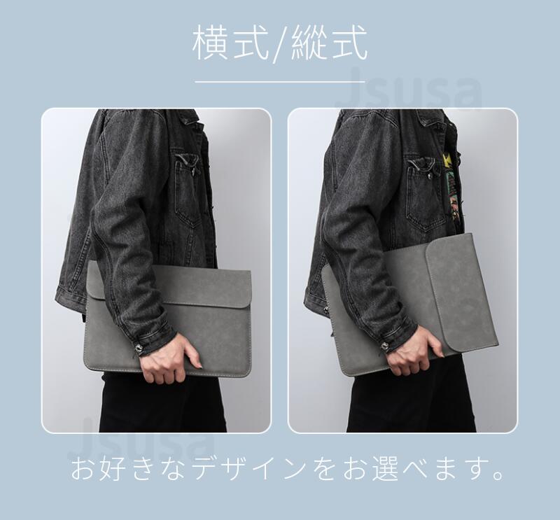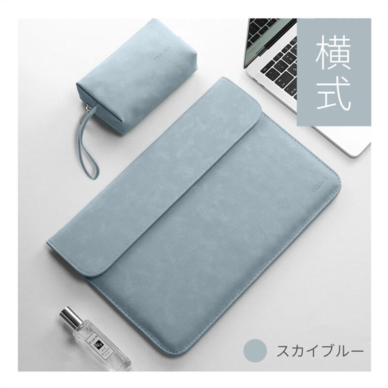 東京発送 通勤 通学 衝撃防止 13.3型 13.6型 14.2型 MacBook Pro Air用レザーポーチ 充電器ケーブル収納可能なバッグ付属