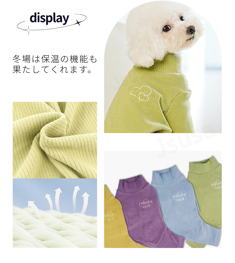 軽さと温かさと伸縮性で愛犬の動きを妨げません。1年中使いやすい素材感です。