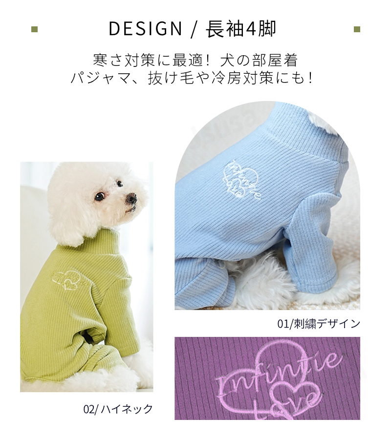 長袖4脚設計!寒さ対策に最適!犬の部屋着/ルームウェア/パジャマ/抜け毛や冷房対策にも!