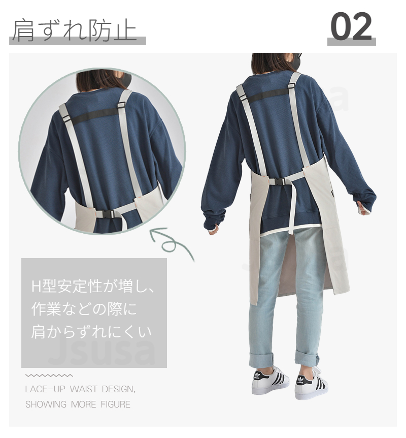 肩ずれ防止機能!H型安定性が増し、作業などの際に肩からずれにくくしています。