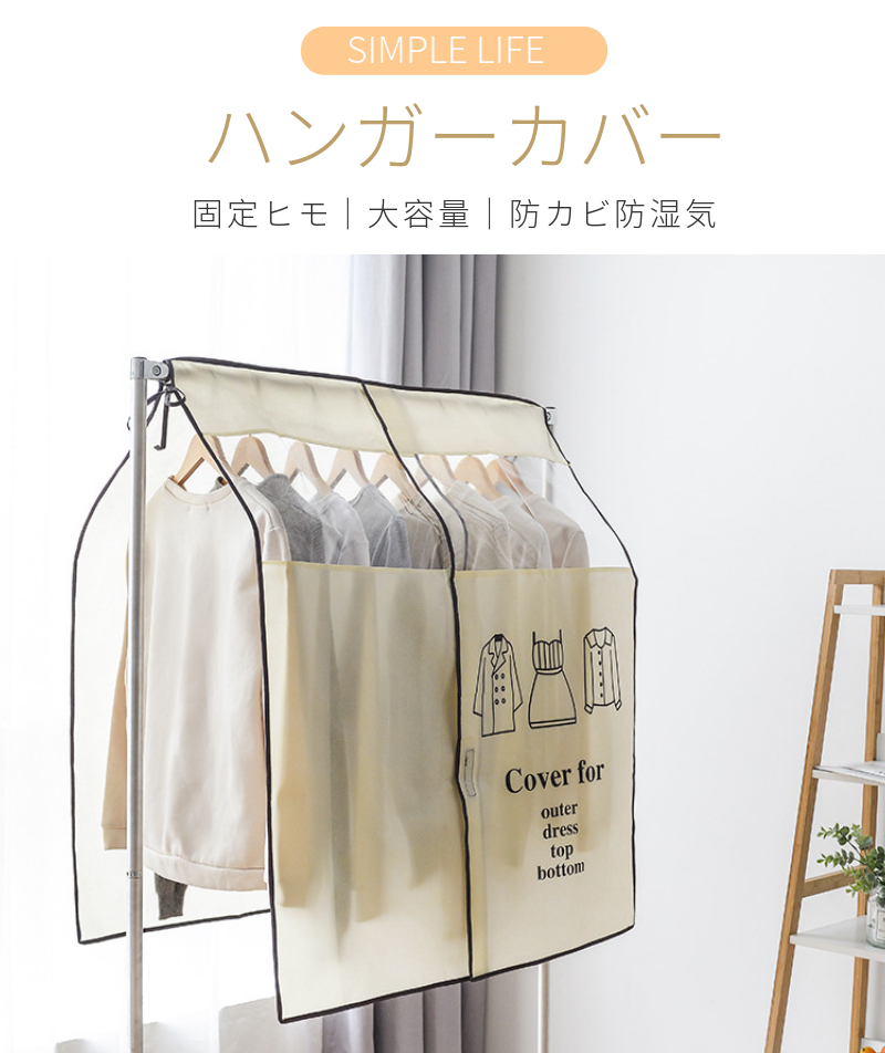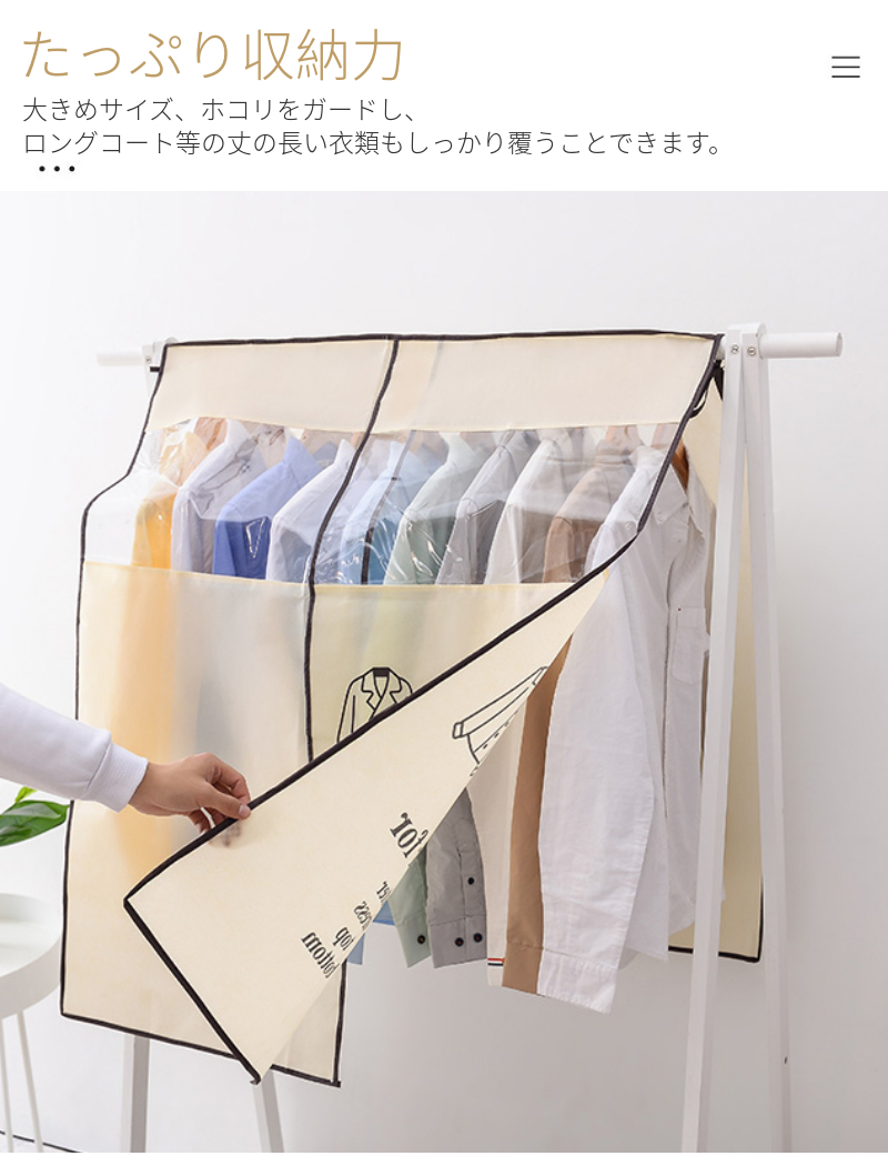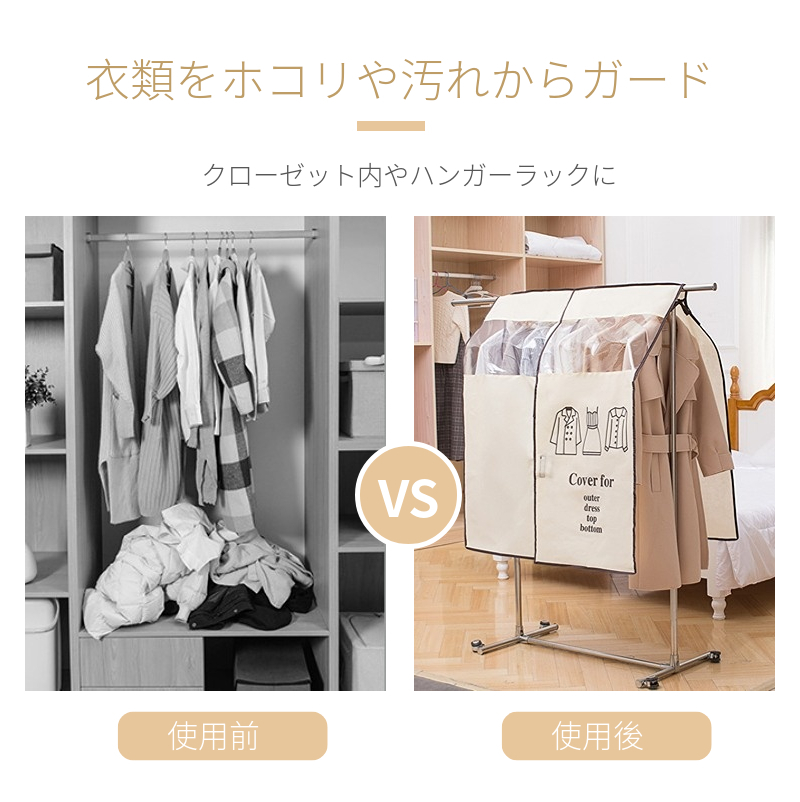 クローゼット内や、ハンガーラックに掛けた洋服をホコリからガード。
