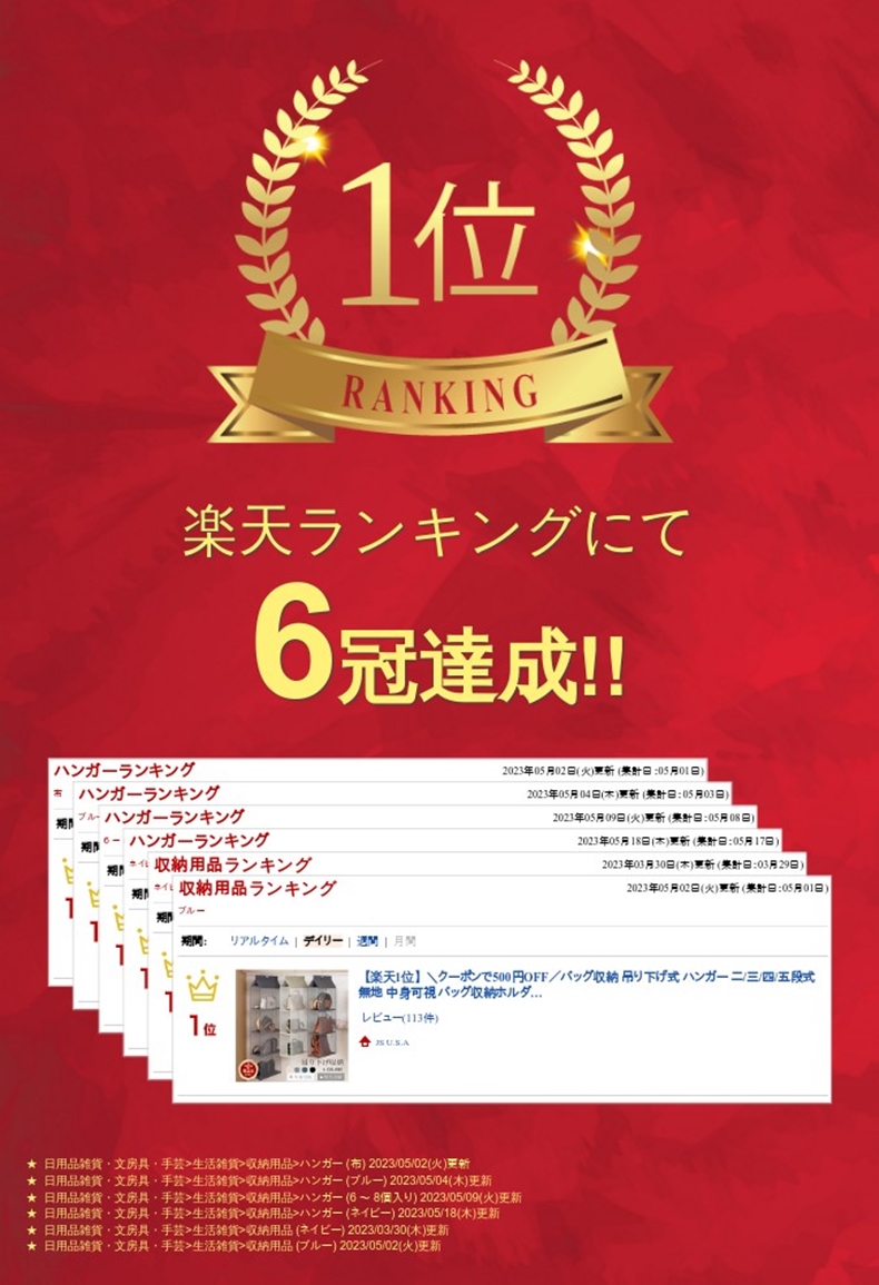 立体的なデザインで、垂直空間を利用し、多層収納できることはもちろん、大切なバッグを型崩れから守れる!