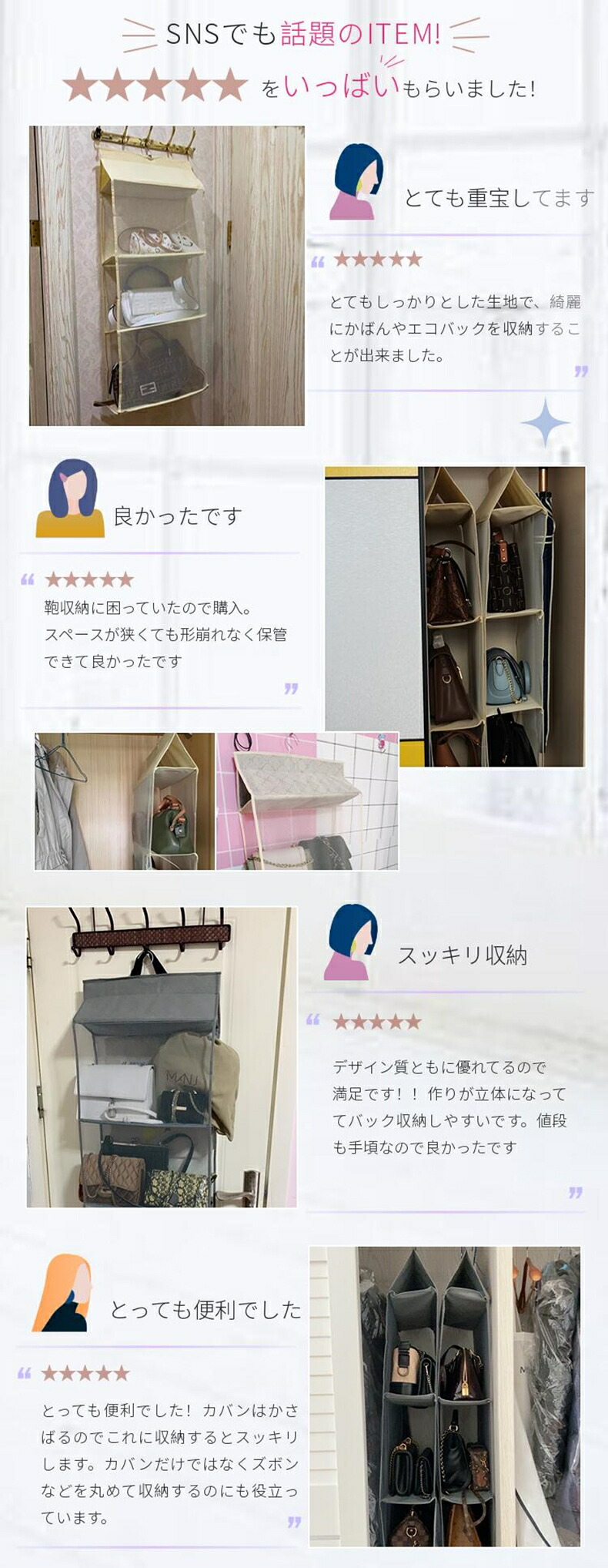 最新入荷!きらきらしている吊り下げ式バッグ収納!