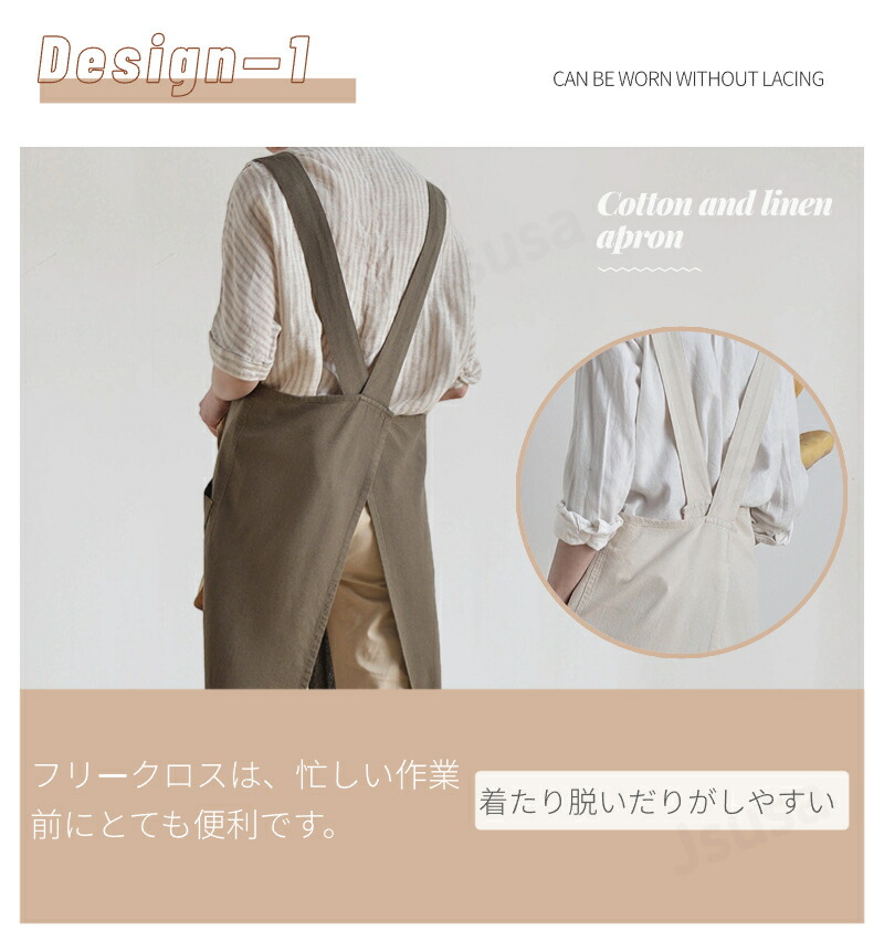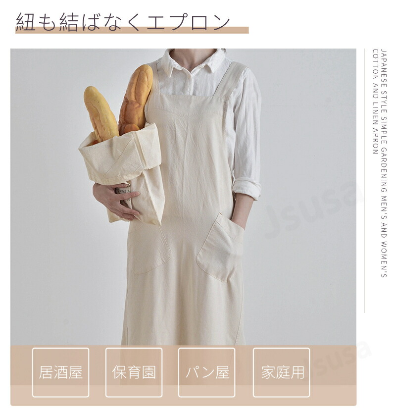 エプロン おしゃれ 保育士 カフェエプロン 紐も結ばなく X型 エプロン 男女兼用エプロン レディース メンズ シンプル 前掛け 業務用 家庭用 花屋 作業用 無地 首掛け DIY ガーデニング 園芸