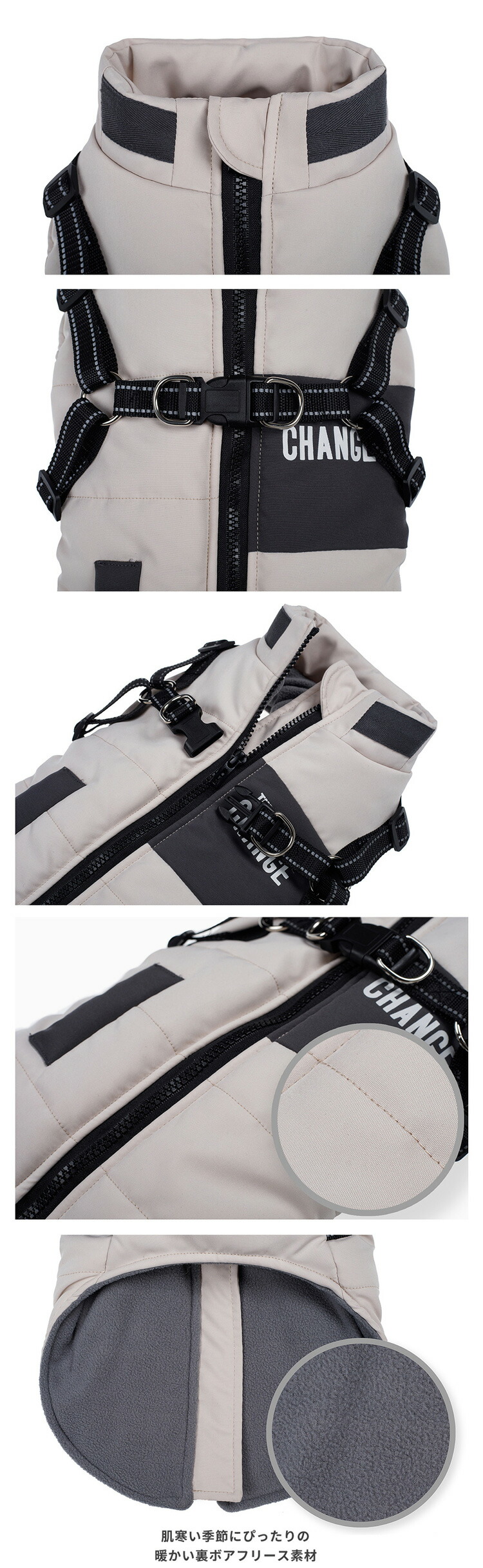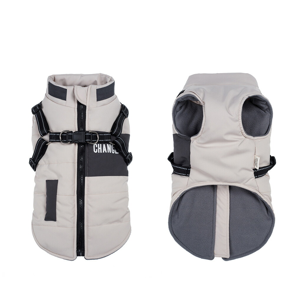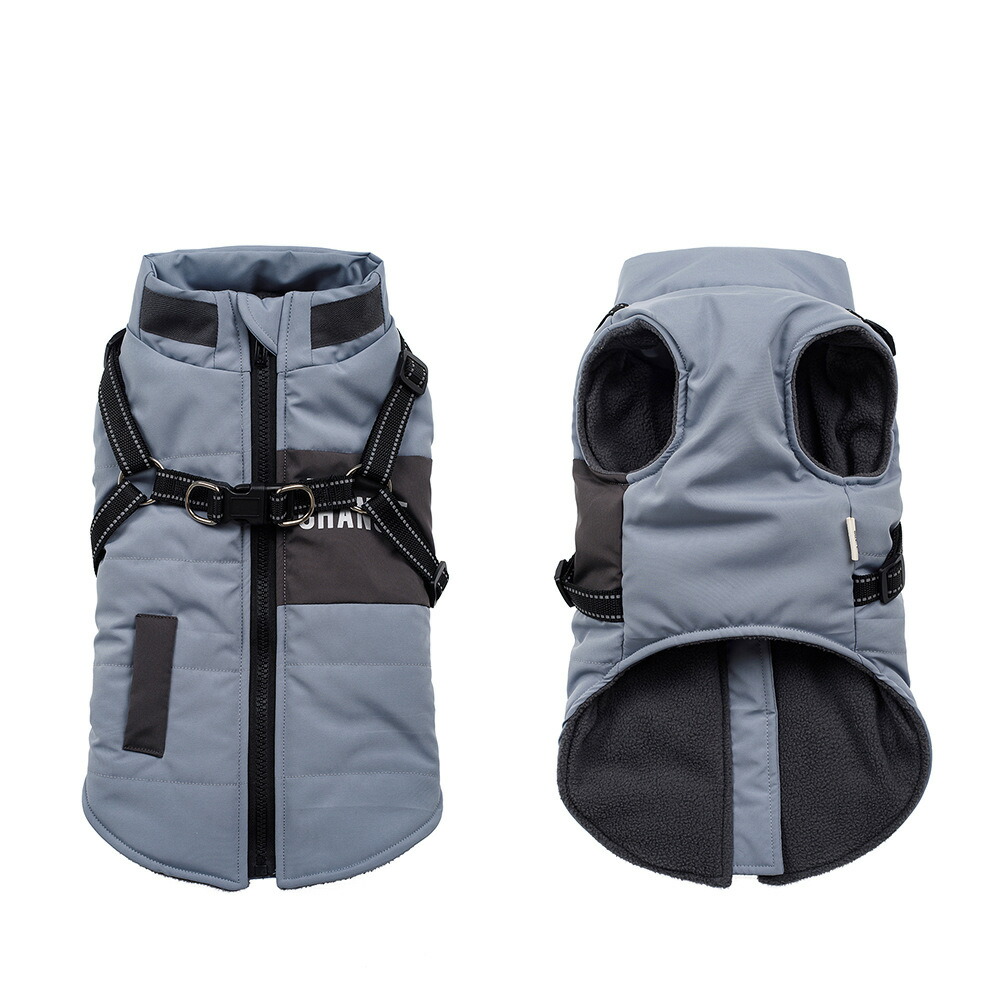 大型犬 犬服 ベスト 冬 ダウン風 ハーネス 一体型 ジャケット アウター コート ハーネス付き 背中開き 防寒 ドッグウェア ペットウェア 背開き ペット服 フリース 裏起毛 中型犬 かわいい あっ