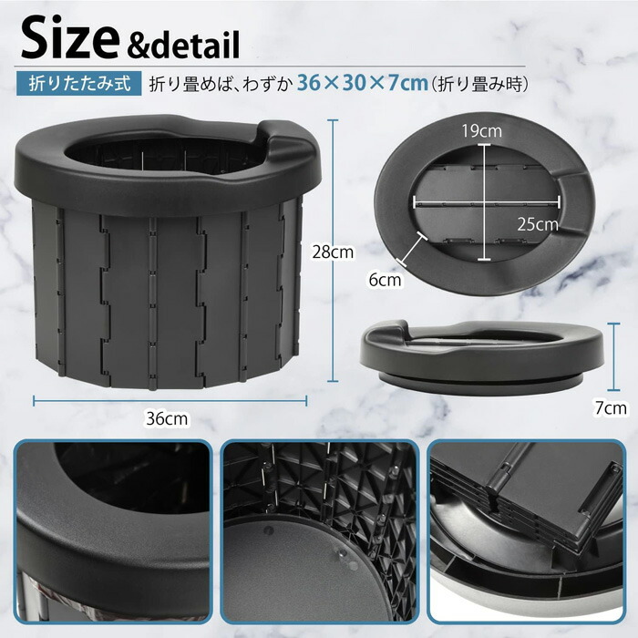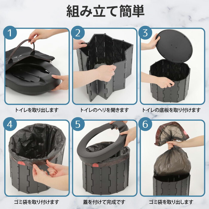 防災グッズとして活躍する便利な簡易トイレは、避難所や自宅、テントの中など様々な場所に簡単に設置することができます。素 材 プラスチック製生産国 中国セット内容 折り畳み式ポータブルトイレ本体×1