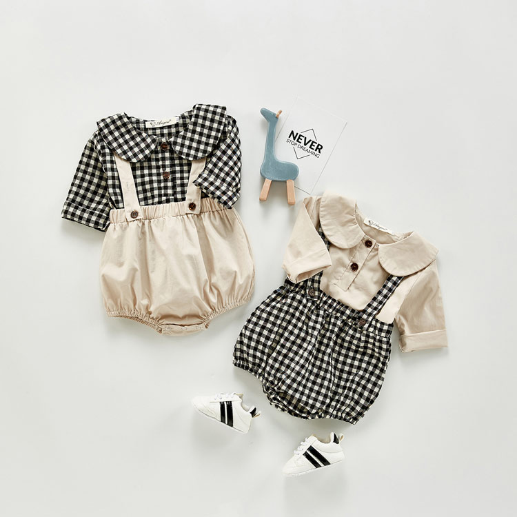 カラー: チェック柄ブラウス×サロペット ブラウス×チェック柄サロペット