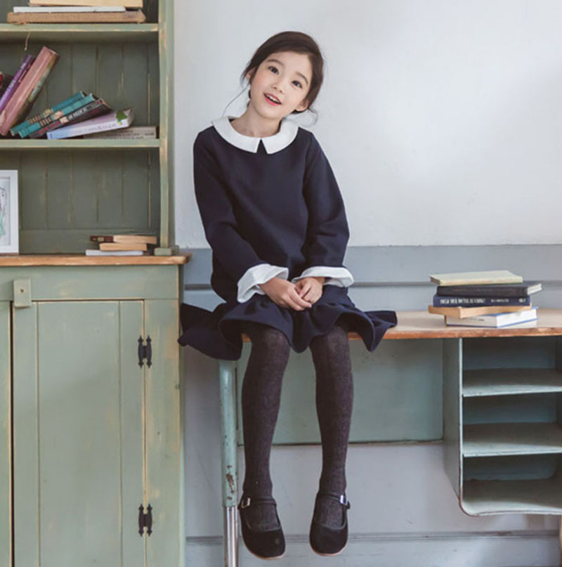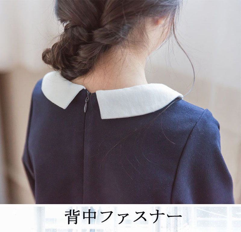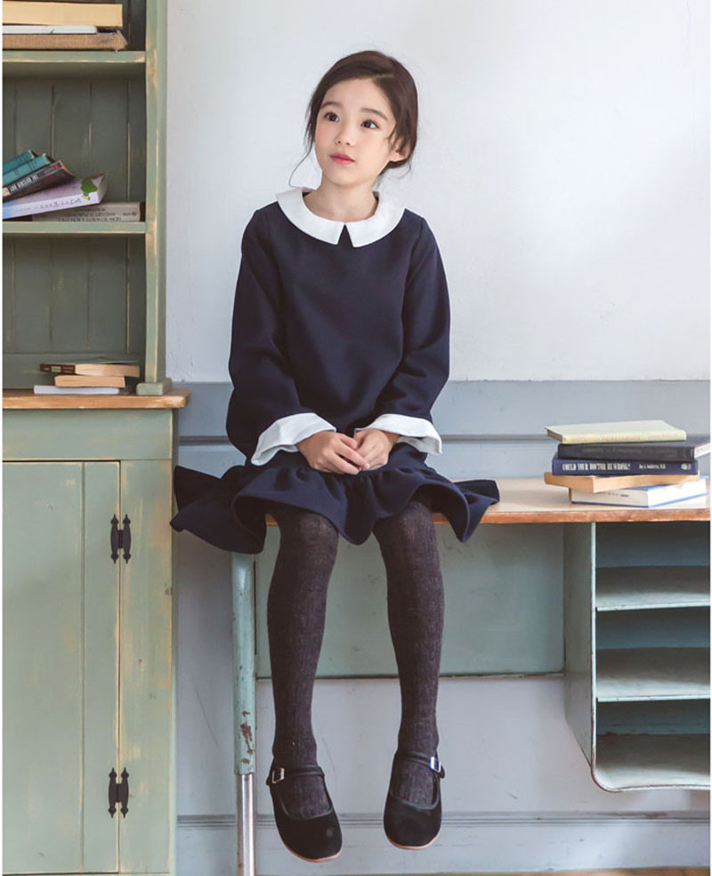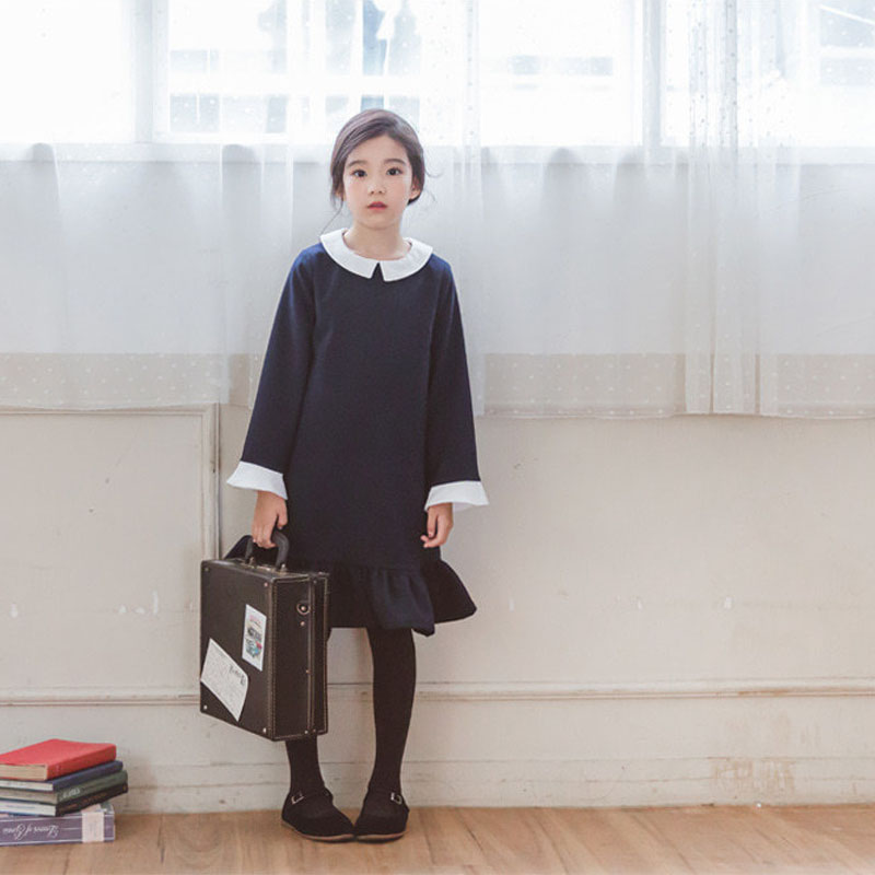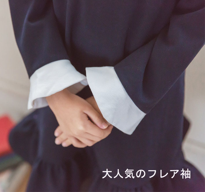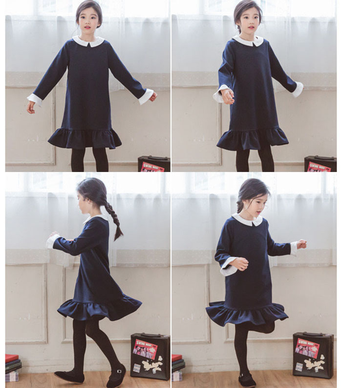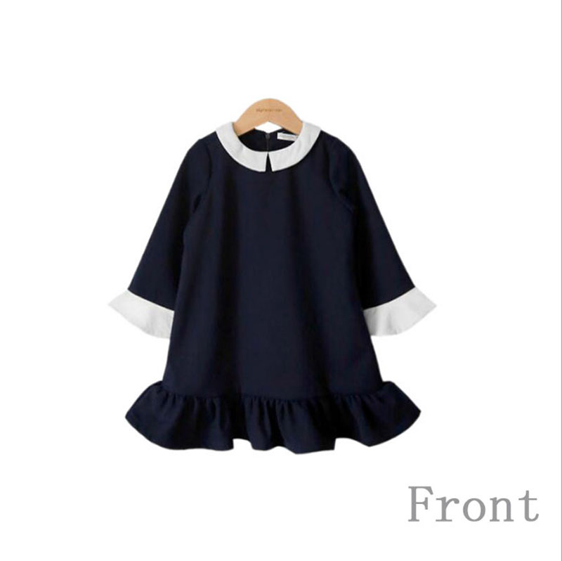 入園式 女の子 ワンピース フォーマル 白襟ワンピース 裾フリル 入学式 卒業式 法事喪服 ニューモダンスタイル ワンピース ネイビー お受験 面接 長袖 発表会 結婚式 お祝い キッズ 冠婚葬祭 春秋冬
