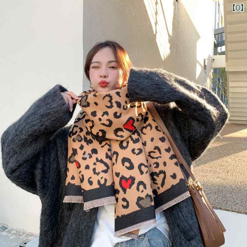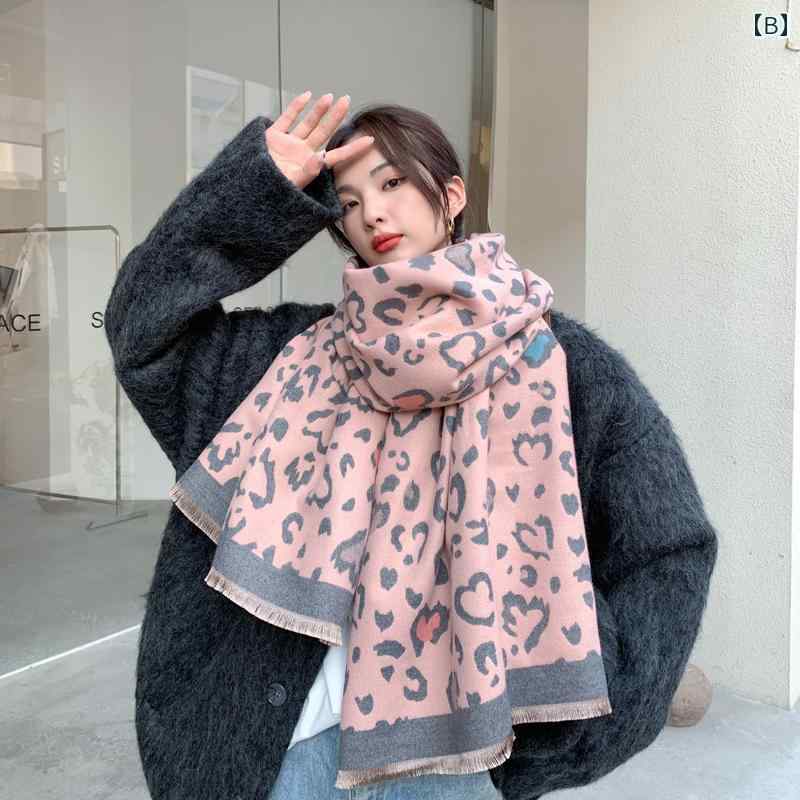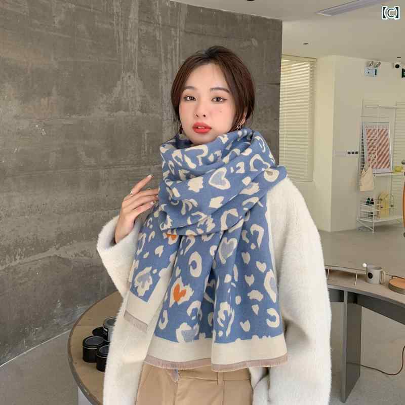 レディース ファッション 秋冬 ニット スカーフ マフラー 女性 韓国 ネックウォーマー かわいい おしゃれ 60cm×190cm 厚手 ロング ショール ヒョウ柄 アニマル柄